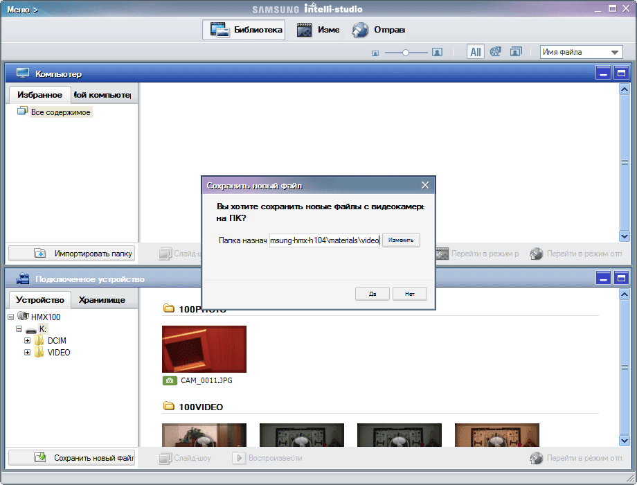 С помощью данной программы можно скопировать весь снятый материал в выбранную папку на жёстком диске ПК.