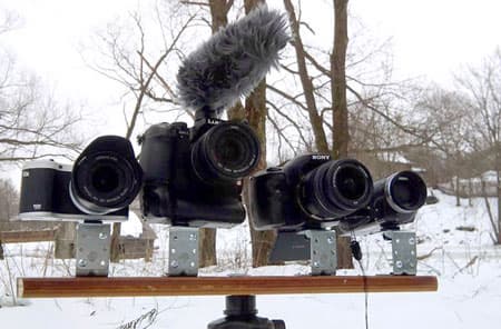 Думается, при умелом совместном использовании видеокамеры и фотоаппарата, можно получить великолепный тандем: видеокамеру использовать при съемке с хорошим освещением, а фотоаппарат применять в потемках. Не стоит бояться резкой смены разрешающей способности при переходе от видеокамерного к фотоаппаратному видео: разрешающая способность видеокамер трагически падает вместе с уровнем освещения. И падает до тех пор, пока не становится ниже разрешающей способности фотоаппарата. Возможно, в таком случае имеет смысл изначально использовать фотоаппарат, если ожидается съемка в темноте?