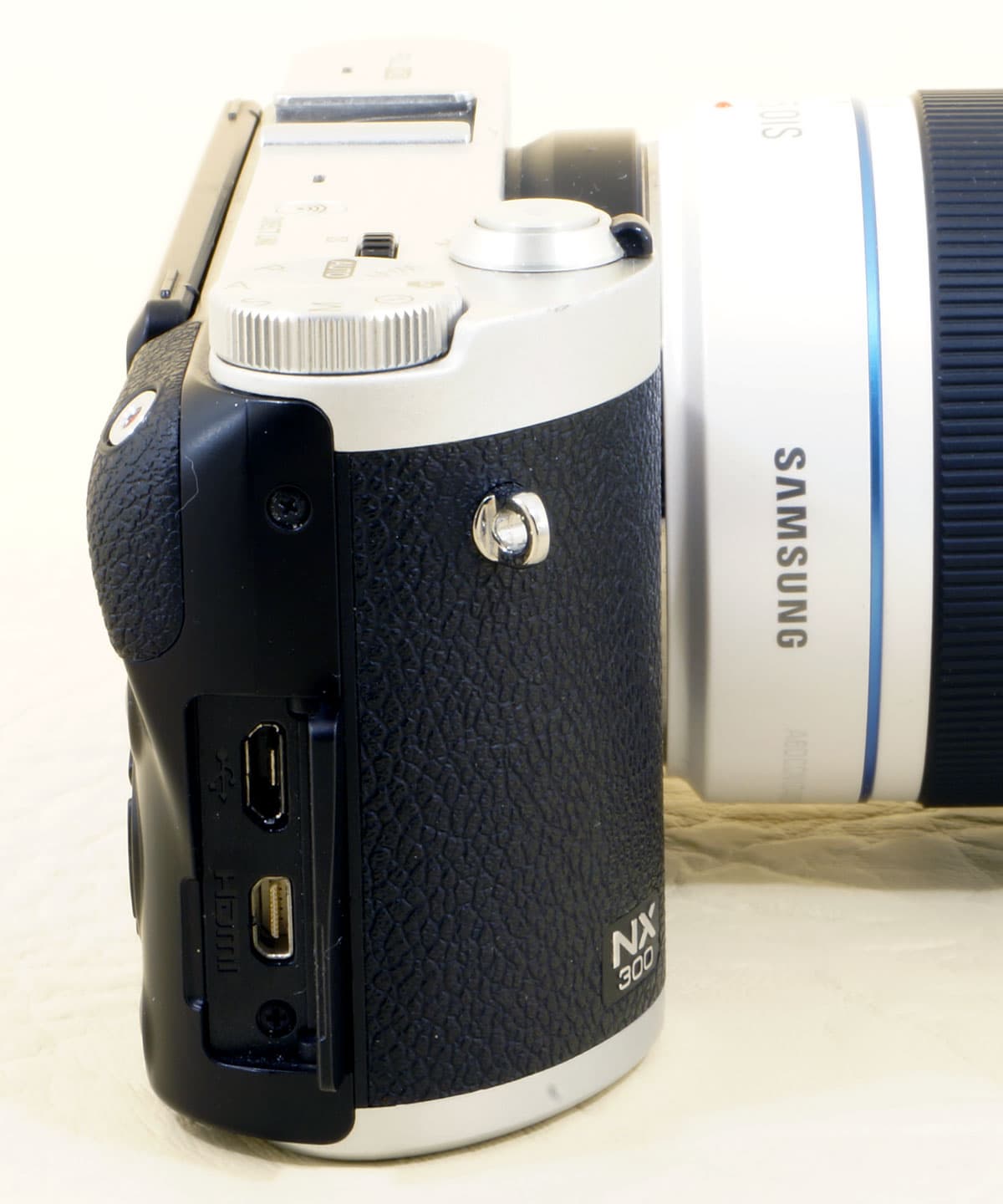 Фотоаппарат оснащен всего лишь двумя интерфейсами (если не считать беспроводных средств связи): Micro-USB и Micro-HDMI. Оба этих порта находятся рядышком, на боковой стороне корпуса, под откидной крышкой.