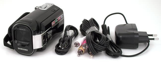 Комплектность видеокамеры вполне обычная: блок питания, USB-кабель, и композитный аудио-видео кабель.
