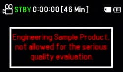 Аппарат, предоставленный для тестирования, является инженерным образцом, видеокамера предупреждает об этом ещё при старте: