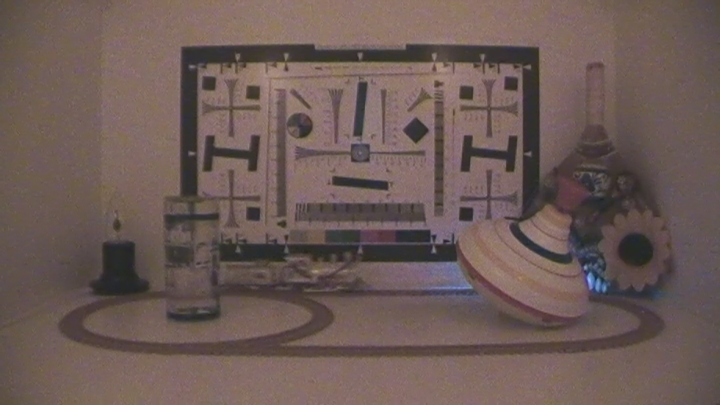 Данное тестирование проводится согласно опубликованной методике в целях установления чувствительности видеокамеры в данных условиях, а также для определения относительной чёткости даваемой картинки; результаты этих тестов аккумулируются на сравнительной странице.