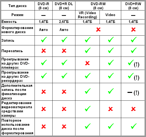 Отдельно стоит сказать о работе с различными типами дисков. Благодаря (или по вине?) стараниям сообществ крупнейших производителей, сегодня мы имеем два стандарта DVD дисков. Первым появился стандарт DVD-R(W), однако стоимость лицензии на данную технологию была столь высока, что многие крупные производители были вынуждены, объединившись, создать альтернативу. Эта альтернатива получила название по имени альянса протестующих «DVD plus RW Alliance». С тех пор в маркировке дисков плюс успешно конкурирует с минусом. Оба этих стандарта совместимы, правда, частично. А нынешние производители техники, в ожидании победы одного из стандартов спокойно стригут купоны, создавая аппараты, одинаково хорошо работающие с обоими стандартами.