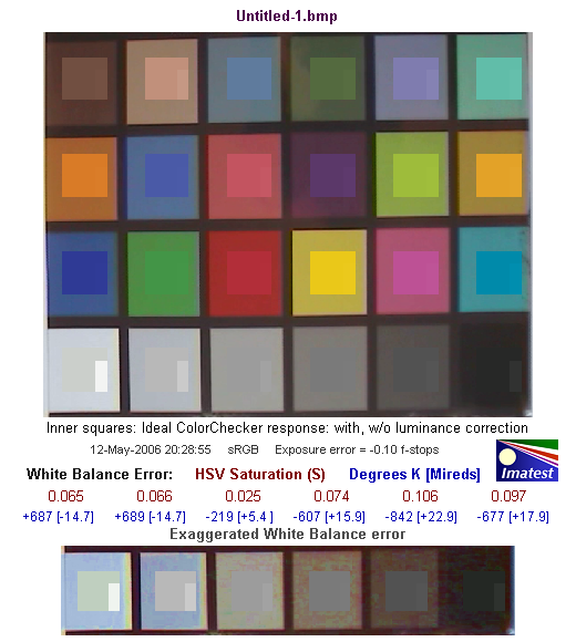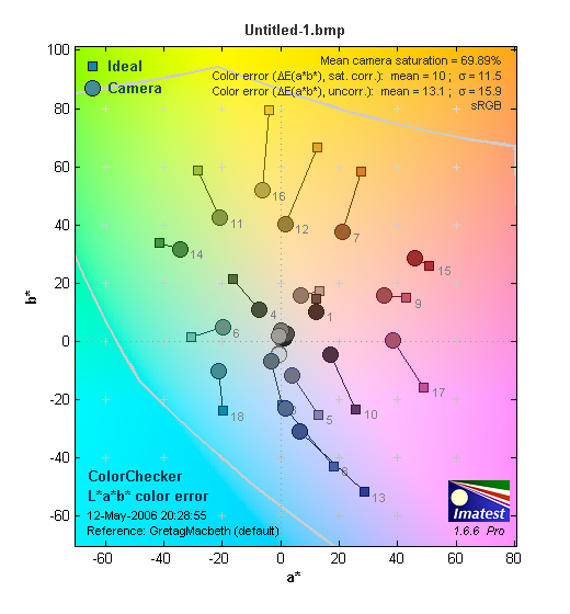 Здесь у камеры дела обстоят нехорошо. Ясно видно, что значение (S) Saturation (насыщенность) значительно превышает положенные 0.02.