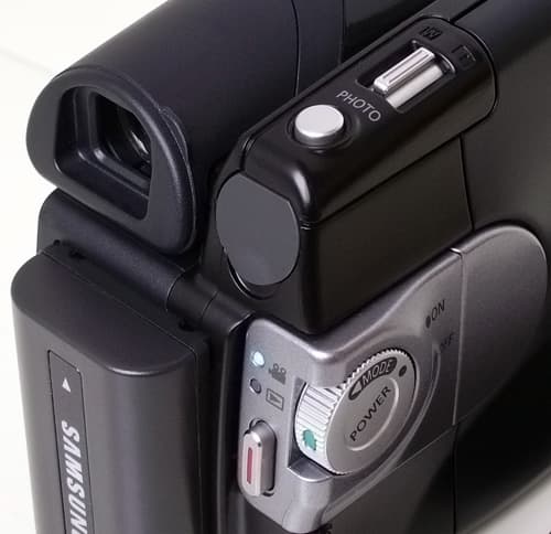 Устоявшийся стандарт размещения органов управления нашел свое воплощение и здесь: под указательным пальцем (повторим женской руки) находится кнопка PHOTO, средним пальцем производится управление зумом. Основная роль, как всегда, отведена большому пальцу руки: в его власти колесико с фиксатором для включения камеры и выбора режимов, да кнопка записи.