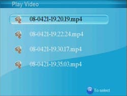 Команда Play Video запускает простенький браузер, где в алфавитном порядке отображаются видеофайлы, находящиеся на вставленной в устройство карте памяти. К сожалению, никаких иных данных о файле, кроме его названия, здесь увидеть нельзя.