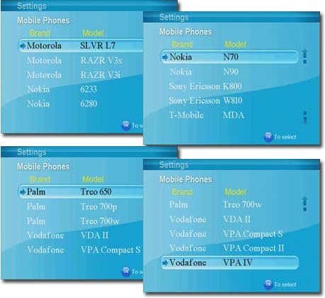 Раздел Mobile Phones содержит перечень популярных моделей мобильных телефонов. Отметка определенной модели активирует захват в таком формате, который гарантированно будет проигрываться выбранной моделью телефона.