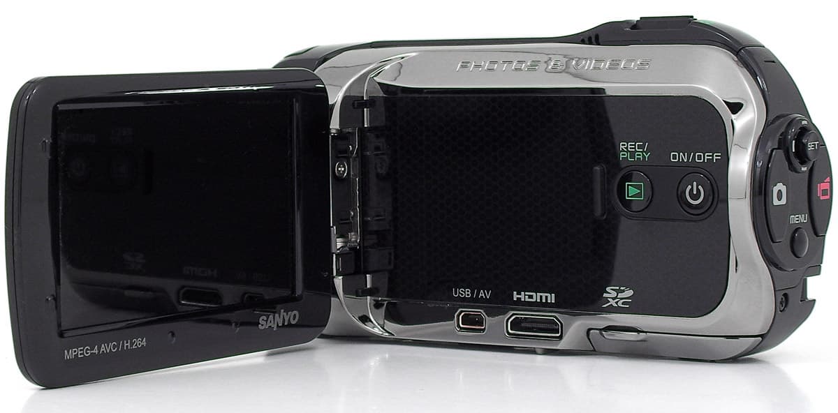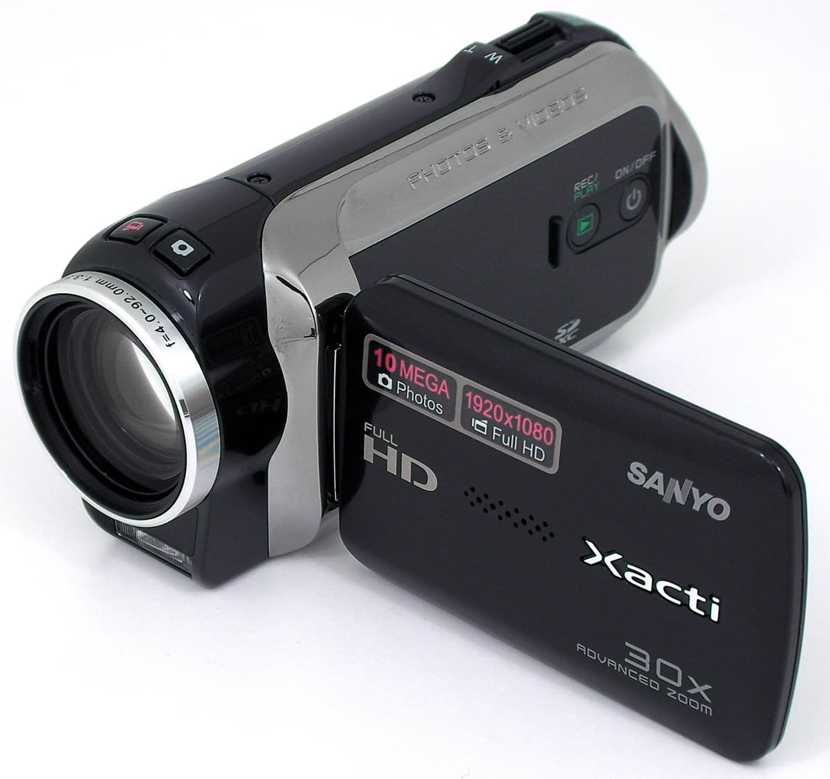 Видеокамеры разработки Sanyo всегда преподносились компанией как устройства двойного назначения: фото и видео. Наверное, не в последнюю очередь благодаря такому позиционированию данные аппараты имели непохожий на обычную видеокамеру форм-фактор, заключающийся прежде всего в пистолетном хвате.