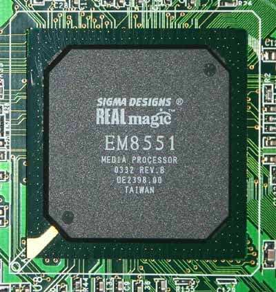 в центре которой располагается сердце устройства — процессор Real Magic EM 8551 от компании Sigma Designs.
