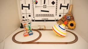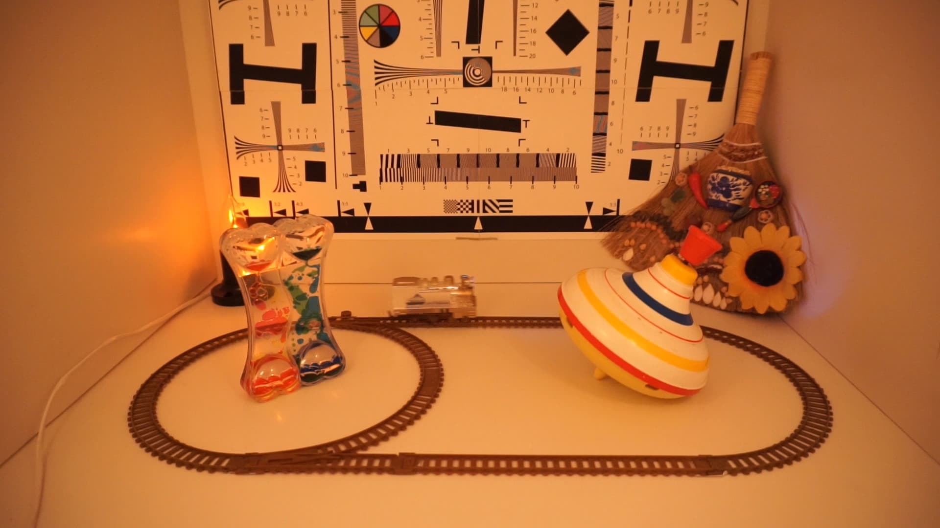 Эти ролики сняты в режиме приоритета выдержки 1/50 и с предустановкой баланса белого «Лампа накаливания», остальные параметры камера подобрала автоматически. Видно, что четкость значительно снижается вместе со снижением уровня освещенности — обычное явление для всех видеоснимающих гаджетов. Приличную картинку камера выдает уже при 20 люксах — это примерно соответствует работе трех стоваттовых лампочек накаливания в помещении площадью 25 квадратных метров. Обратим внимание на работу автофокуса: даже в темных сценах он не теряется, уверенно цепляясь за самый яркий объект, фонарь паровозика. Иногда, при съемке некоторых объектов с мелкими деталями, можно наблюдать небольшой муар.