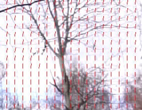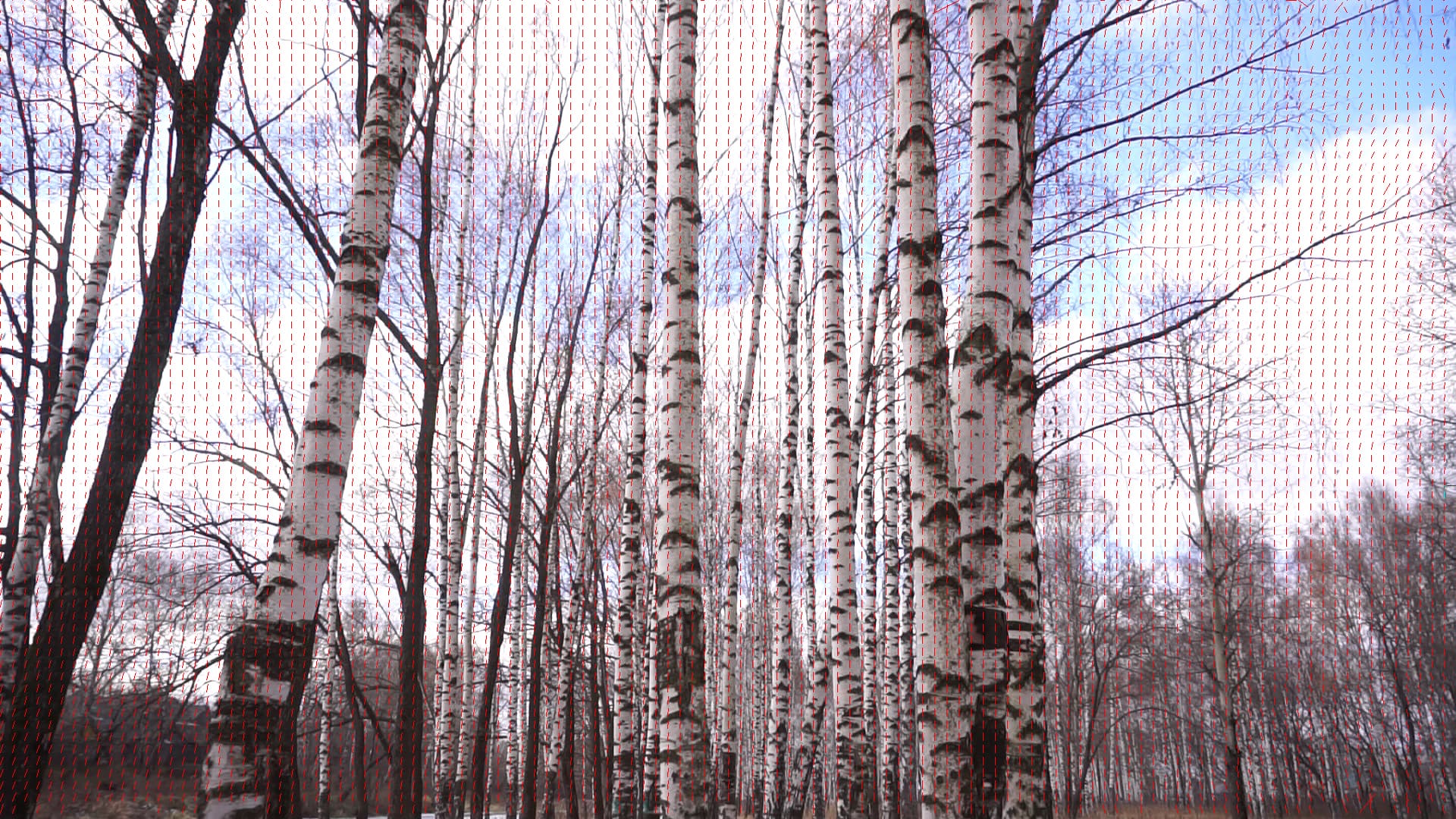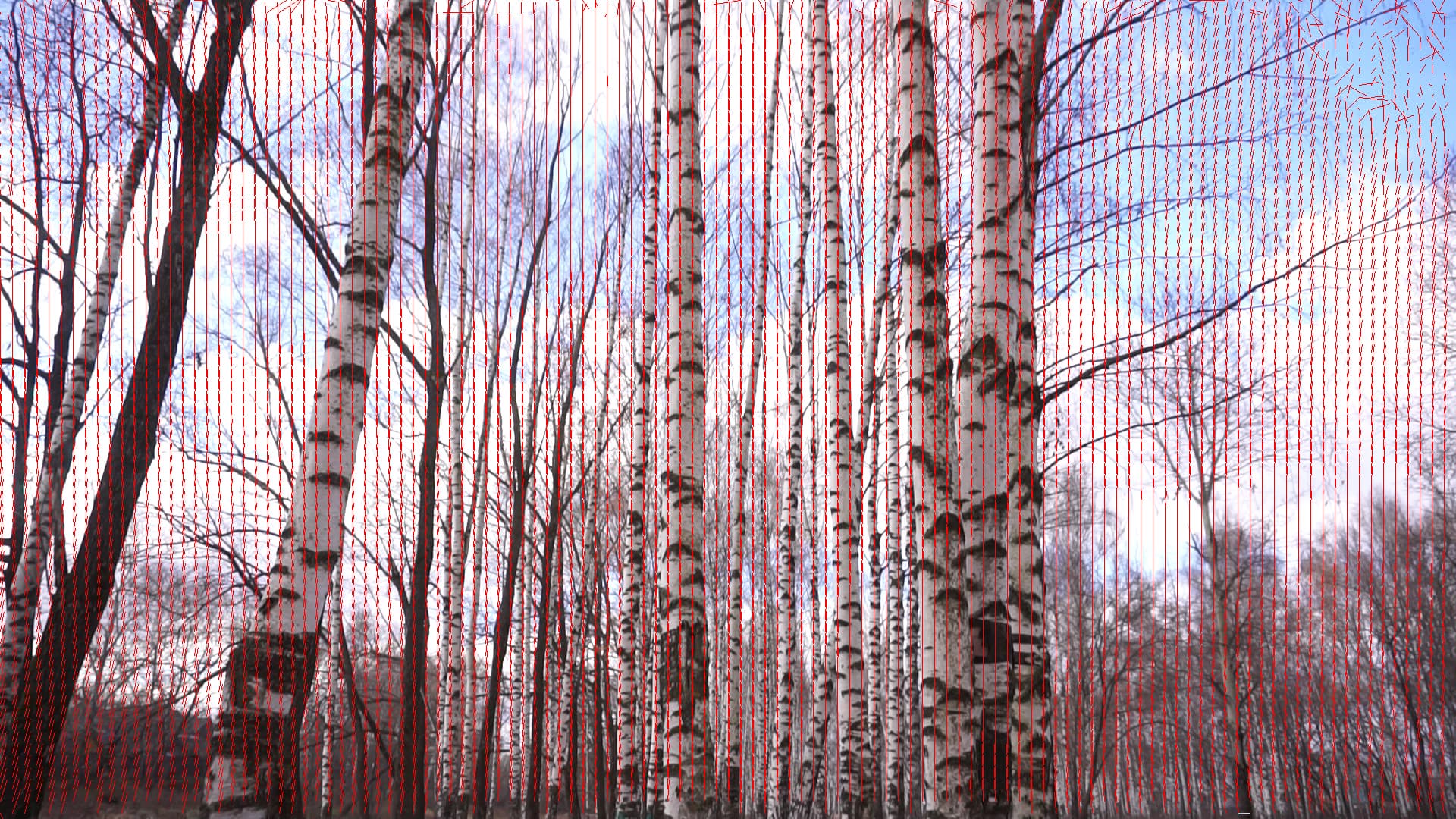 Ага, здесь видно, что кодек XAVC в несколько раз больше отдает битрейт не только на кодирование ключевых кадров, но и для описания движения в промежуточных кадрах, которые представляют собой матрицу чисел. Следовательно, можно ожидать, что этого самого движения в промежуточных кадрах зафиксировано гораздо больше, чем фиксируется в AVCHD. Взглянем на графическое отображение векторов движения, описывающих перемещение блоков (групп) пикселей: