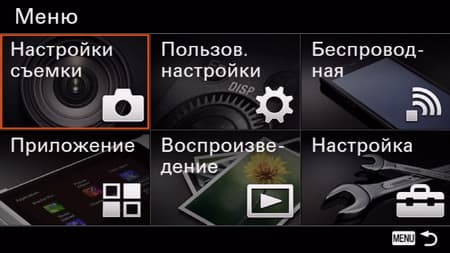 | Настройки съемки | Польз. настройки | Настройки Wi-Fi |
