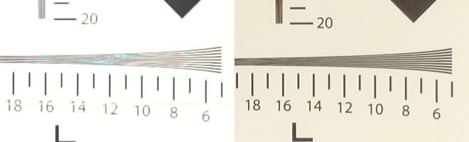 Первый и третий объективы показали вполне достойную для фотоаппарата детализацию, достигающую 900 условных линий по горизонтали и 800 линий по вертикали.