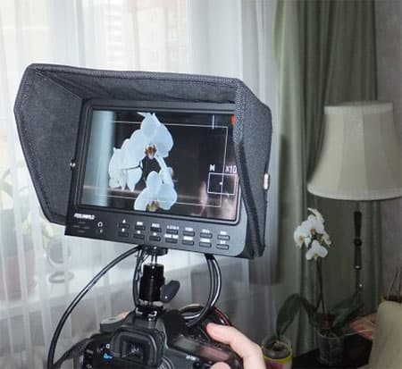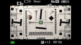 Это обычный стоп-кадр, захваченный с HDMI-выхода рассматриваемой фотокамеры в режиме подключения 1920×1080. Ничего странного — уменьшенное в размерах видеоизображение, помещенное в центр черно-траурной рамочки вкупе со столь необходимой служебной информацией. Отображение этих рамочек с цифрами и символами отключить никак нельзя, разумеется. Так же, как нельзя получить чистый Full HD сигнал. Это ограничение известно многим китайским производителям накамерных мониторов: в таких мониторах имеется особый режим отображения, когда картинка с фотоаппарата увеличивается, и черная рамка с данными о параметрах съемки исчезает за границами экрана. Микроскопом по гвоздю.