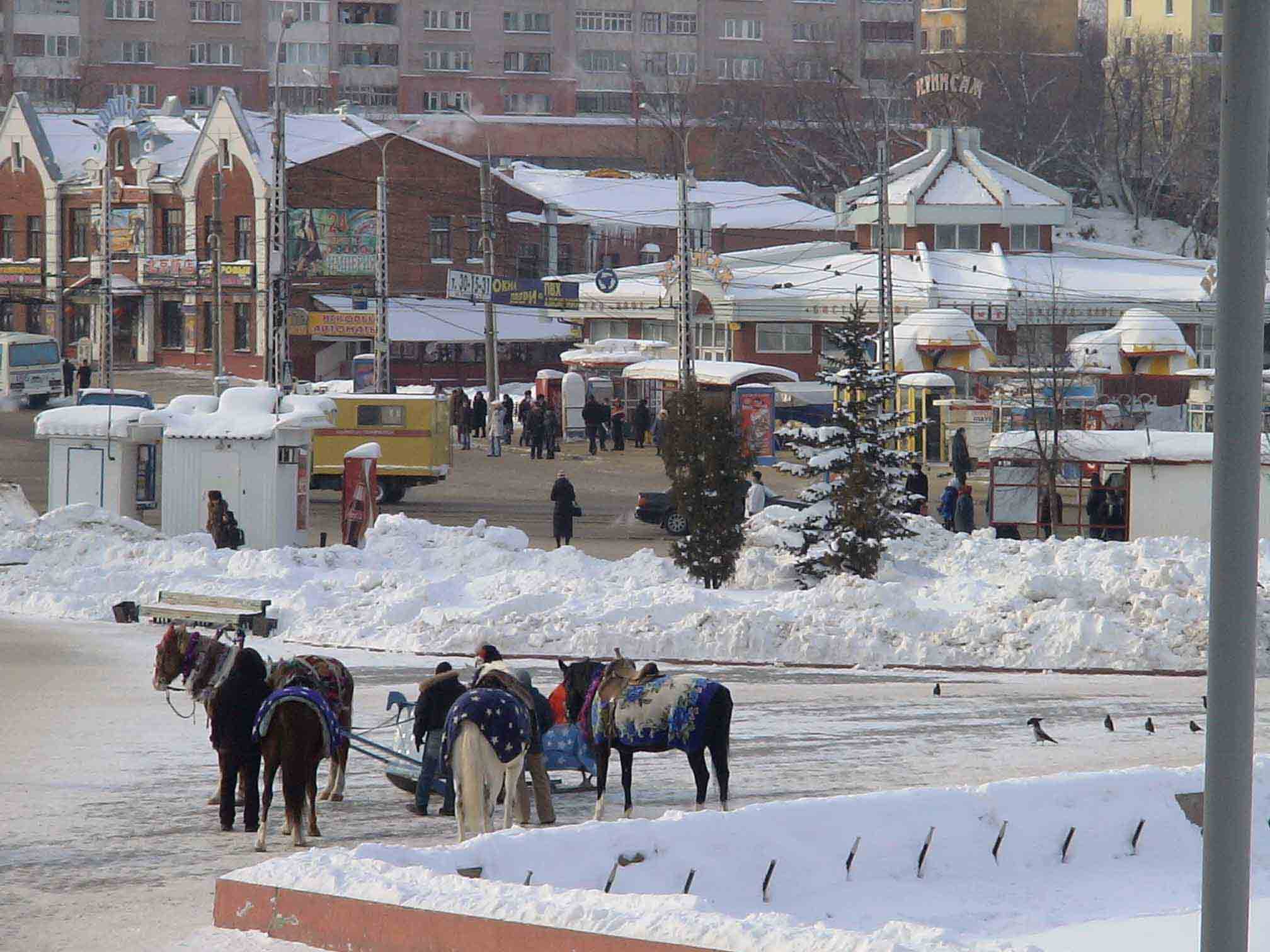 В морозном воздухе сегодня присутствует дымка, и это заметно на городских фото.