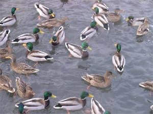 Считается, что для кодеков всегда сложными являются сцены с водой. В городских условиях водопад найти довольно сложно, даже участок с открытой водой в такие морозы редкость. Тем не менее, в чуть ли не единственном во всем городе незамерзшем водоеме, плавающие утки создавали небольшие брызги. Камера с честью выдержала испытание: в готовом видео никаких артефактов не наблюдается.