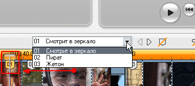 Маркеры можно добавить нажатием на эту неприметную кнопку. Проставляются они в любом месте проекта, исключая переходы. При наличии в проекте хотя бы одного маркера над таймлинией появляется выпадающее меню, содержащее список добавленных пользователем маркеров и их описания (которые вводятся вручную при добавлении каждого нового маркера). В дальнейшем навигация по маркерам осуществляется как с помощью того же выпадающего меню, так и с помощью стрелок, расположенных справа от него. Уже добавленный маркер можно перетаскивать влево-вправо мышкой, меняя его положение на таймлинии.