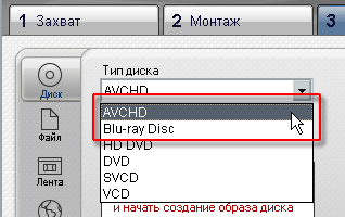 Еще одно немаловажное нововведение два новых пункта в меню "Тип диска" модуля вывода фильма. Теперь с помощью Studio пользователь может создать AVCHD и Blu-ray диски с анимированными меню.
