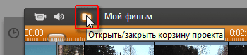 Следующее новшество: Корзина проекта. Незаметная кнопочка, появившаяся вверху таймлинии, открывает новый и исключительно полезный модуль.