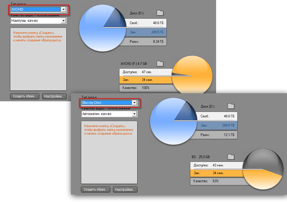 Одно радует: разработчики решили не удалять из форматов экспорта программы предустановку AVCHD-диск. Поясним: AVCHD-диск — это тот же самый Blu-ray, только лишь записанный на DVD-болванку, т.е., имеющий меньший объём — вот и вся разница.