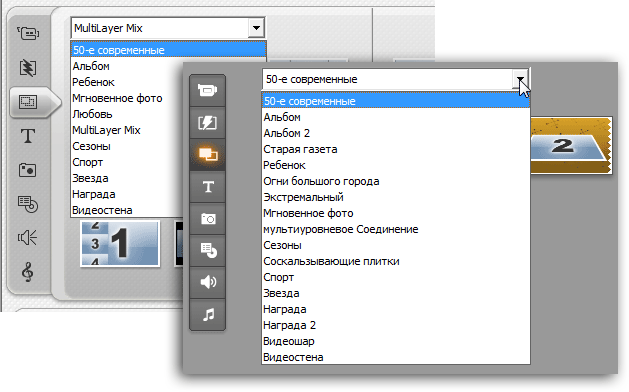 Следует также упомянуть значительно расширившийся ассортимент тем монтажа. Теперь здесь 137 встроенных тем, разбитых на категории.