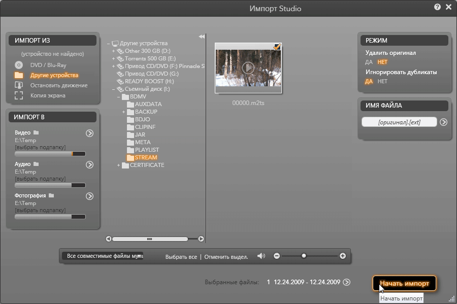 За импорт материала в программу теперь отвечает модуль, так и называющийся: Импорт Studio. Почему не "Захват", как было раньше? Встроенная справка трактует этот "ребрендинг" следующим образом:
