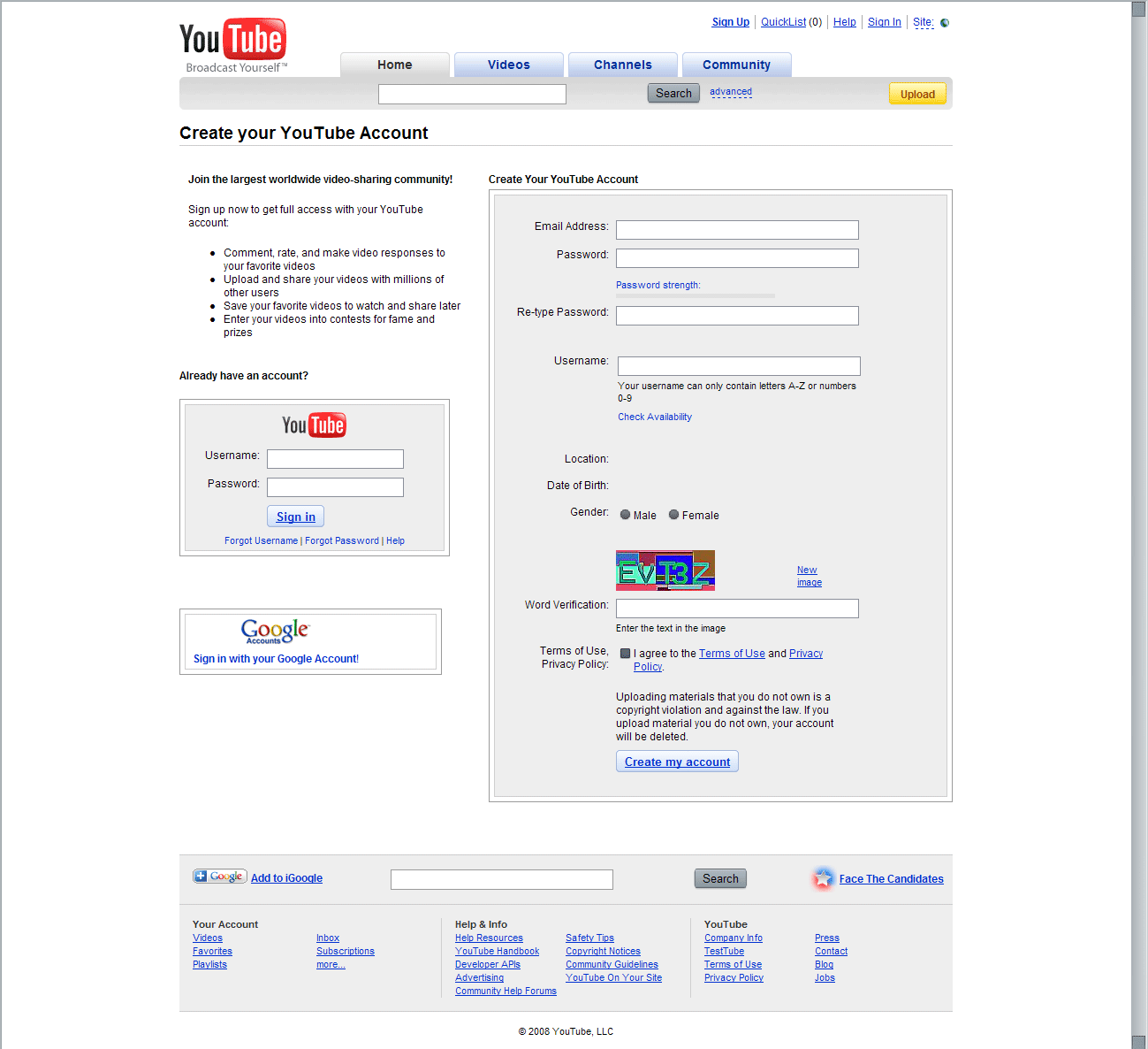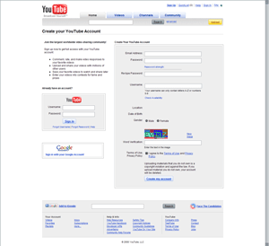 Нажмем кнопку Регистрация на YouTube, что приведет к открытию страницы с регистрационной формой.