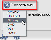 Авторинг таких дисков производится аналогично созданию Blu-ray дисков, с одной лишь разницей: если в первом случае мы могли создать образ диска (либо папку с файлами для последующего прожига в сторонней программе), то здесь выбора не предоставляется, пункты Создать папки AVCHD и Создать образ диска остаются неактивными. Прожиг и точка!