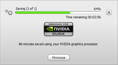 Во время окончательного просчёта vReveal выводит информацию не только о времени, оставшемся до конца работы, но и подсчитывает количество минут, сэкономленных пользователем за счёт использования технологии CUDA.