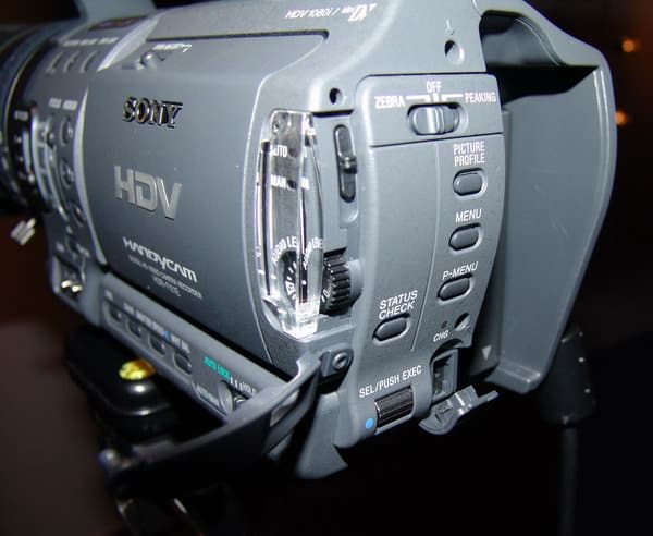 Камера немного перевешивает вперёд даже при установленном аккумуляторе большой ёмкости (NP-F970 на 6600 мА·ч). Но левая рука, находящаяся там, где ей и положено быть — внизу объектива, снимает проблему. «Первый серьёзный HDV-камкордер» обладает 1/3-дюймовыми 1,07-мегапиксельными матрицами с микролинзовым покрытием и демонстрирует отличную светочувствительность — 3 люкса. Матрицы, сверхчеткие трансфлективный видеоискатель и экран выполнены в формате 16:9. Уникальными для камеры такого класса являются настройки не только кино-гаммы, но и Skin tone, чувствительности оптического стабилизатора и скорости автокоррекции экспозиции, 14-битный АЦП и кнопка Expanded focus рядом с главным коромыслом зума, которая временно увеличивает центр кадра в 4 раза (на ленту при этом записывается нормальный размер). Ещё одно нововведение — переключатель «зебры» дополнен эксклюзивной функцией подчеркивания контуров (Peaking), аналогичной растровому кружку в окулярах зеркальных фотоаппаратов для облегчения наведения на резкость. Хорошая фокусировка очень важна для HD, и здесь разработчики чуть ли не перестарались, учитывая то, что и автофокус работает великолепно.
