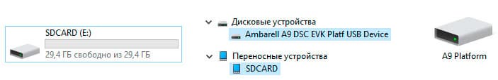 При USB-подключении к ПК рассматриваемая камера становится внешним USB-накопителем с названием A9 Platform.