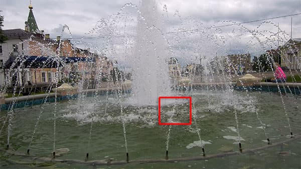 Пора изучить качество кодирования. В статичных сценах оно не вызывает особых нареканий за редкими исключениями. Но картинка, насыщенная движением (множество листвы, мелких веток и т. д.), может таить неприятные сюрпризы. Лучший способ выявить недостатки — снять водный поток. А еще лучше — фонтан.