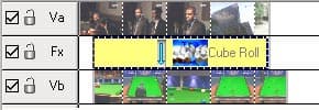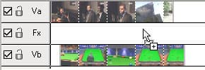 После того, как настройки перехода завершены, он отобразится на тайм-линии. Голубая стрелка показывает направление перехода - в данном случае от дорожки a к дорожке b.
