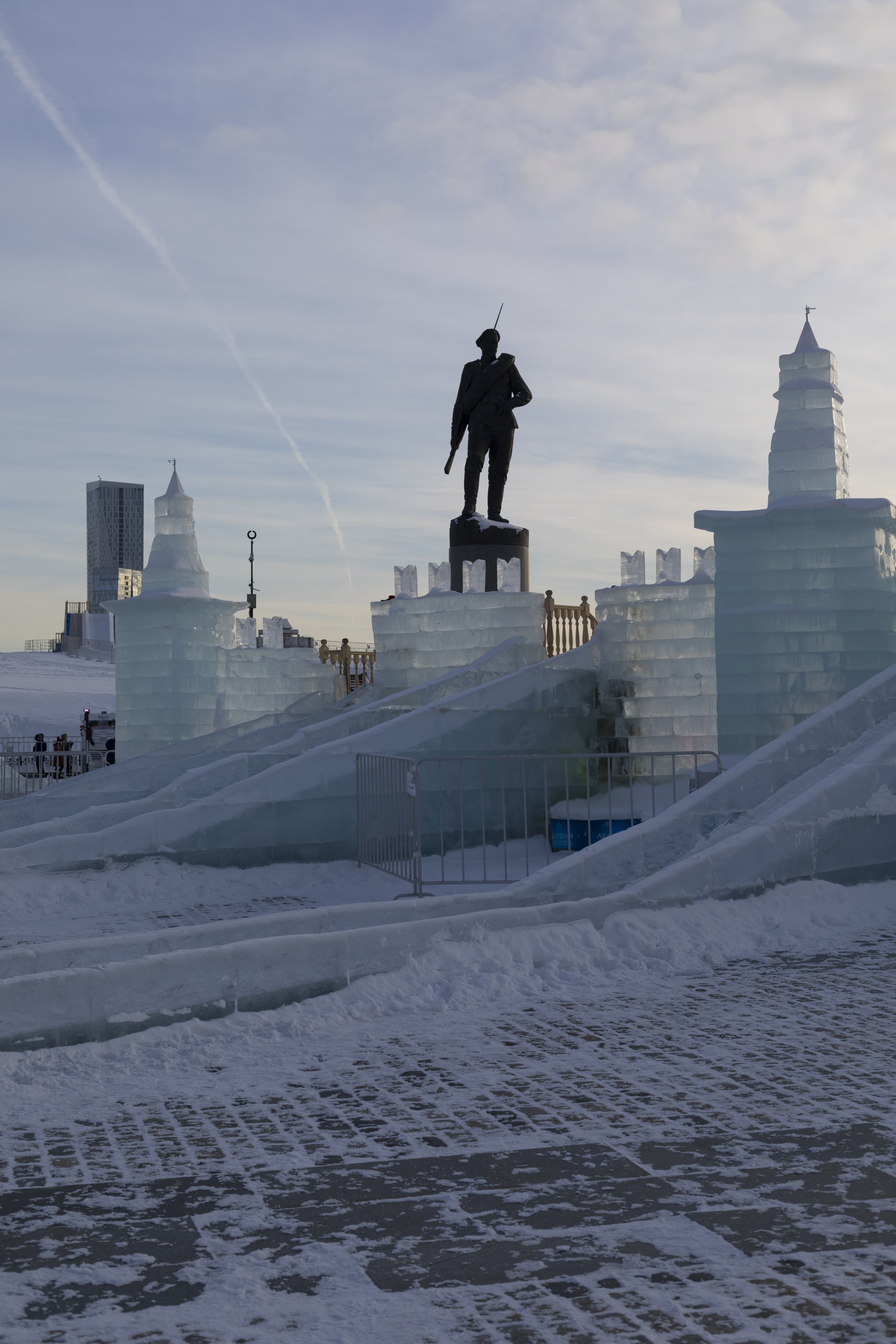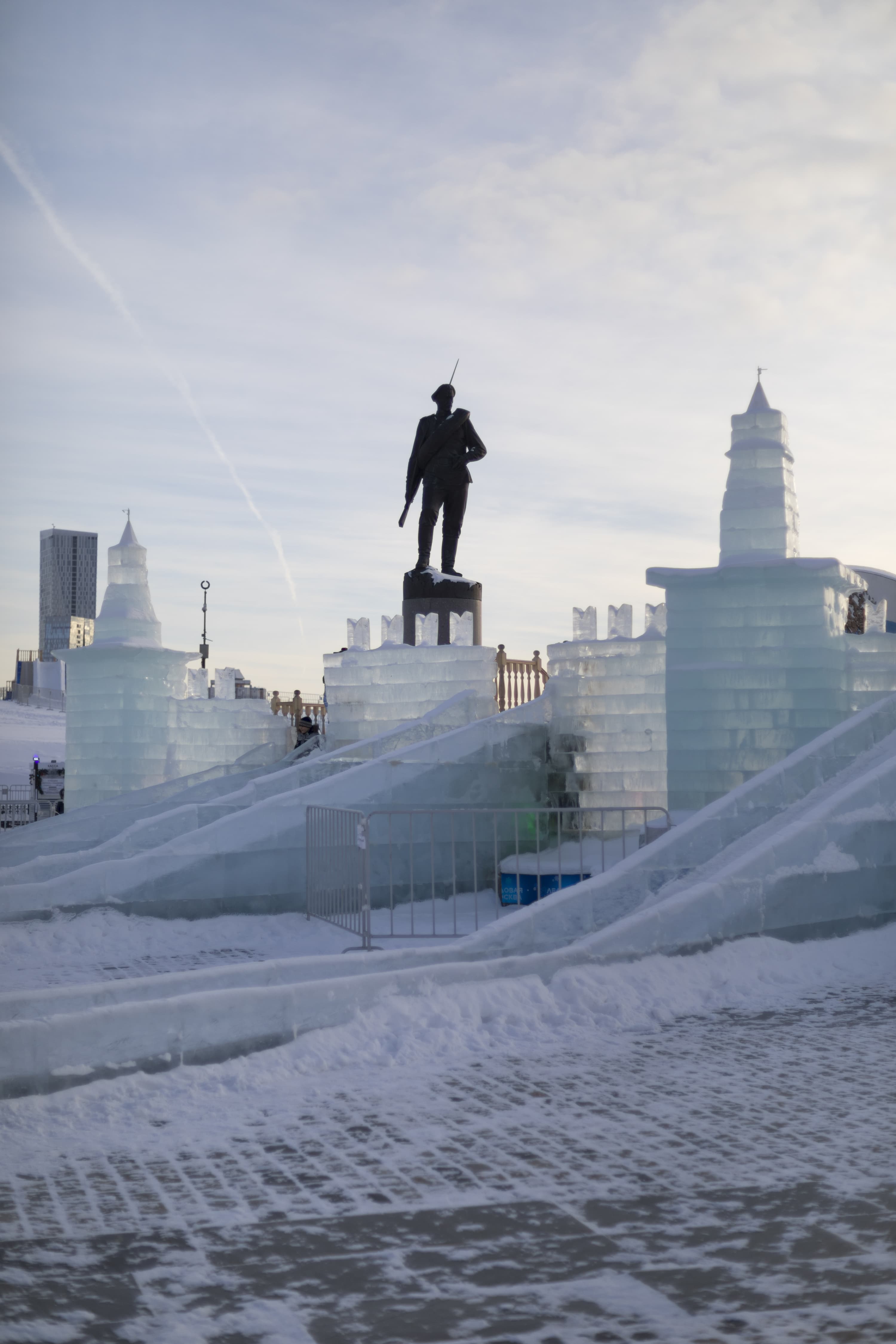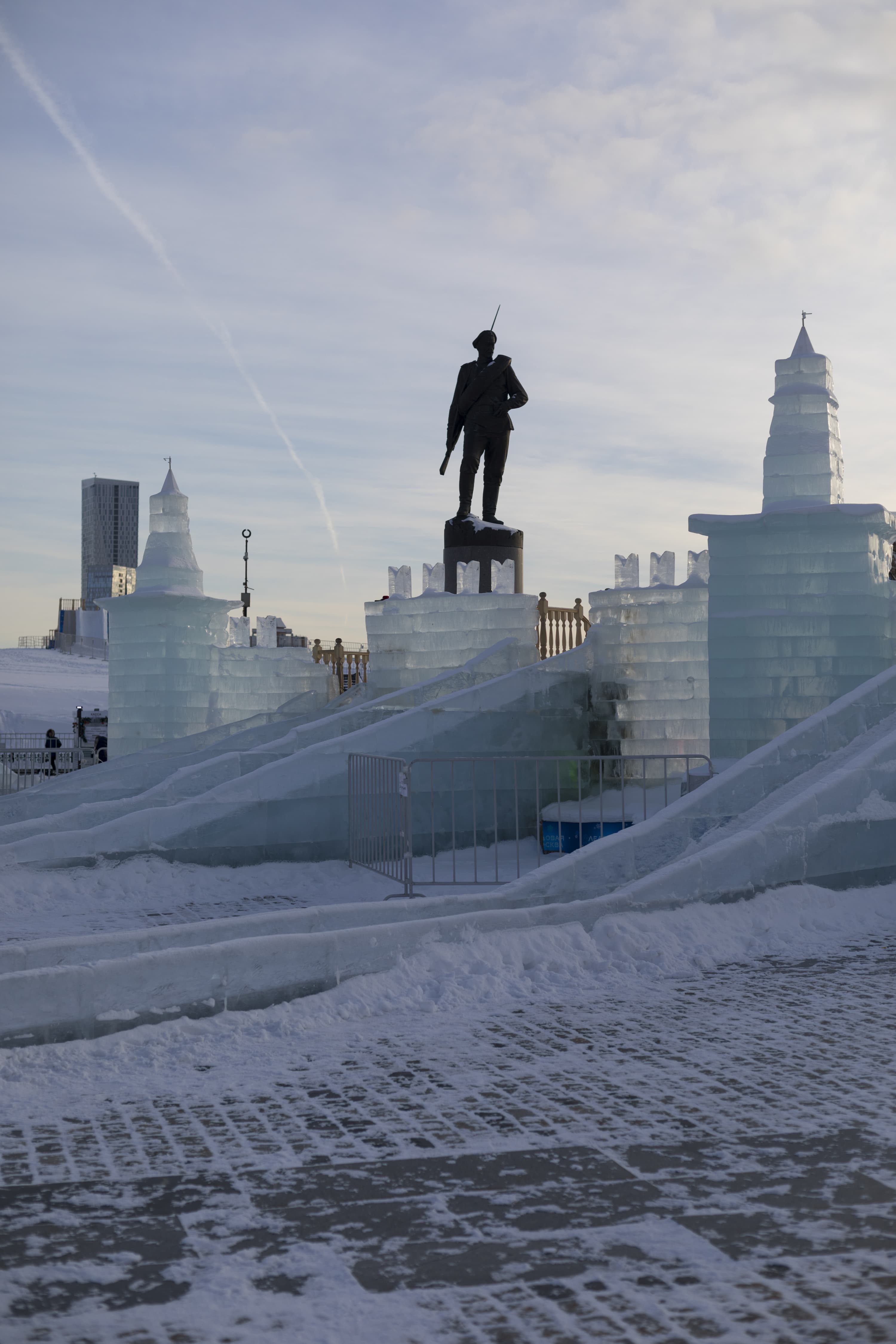 Перейдем к детальному сравнению результатов работы обоих объективов при разном раскрытии диафрагмы. Для каждого приведем по две картинки: верхняя без приложения специфического профиля объектива, нижняя — с профилем, корректирующим дисторсию, виньетирование и хроматические аберрации. Место съемки — выставка ледовых строений в Парке Победы на Поклонной горе в Москве.