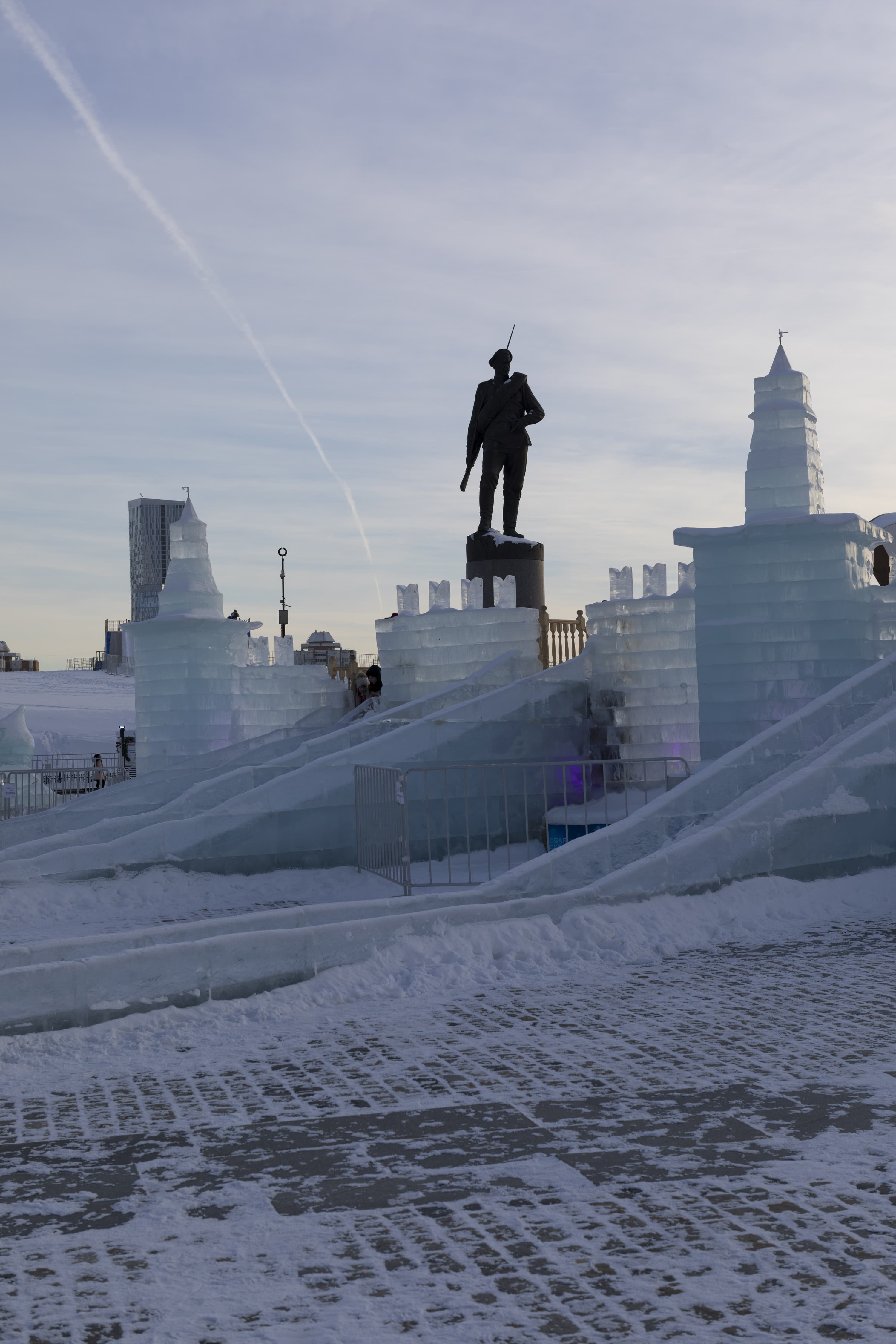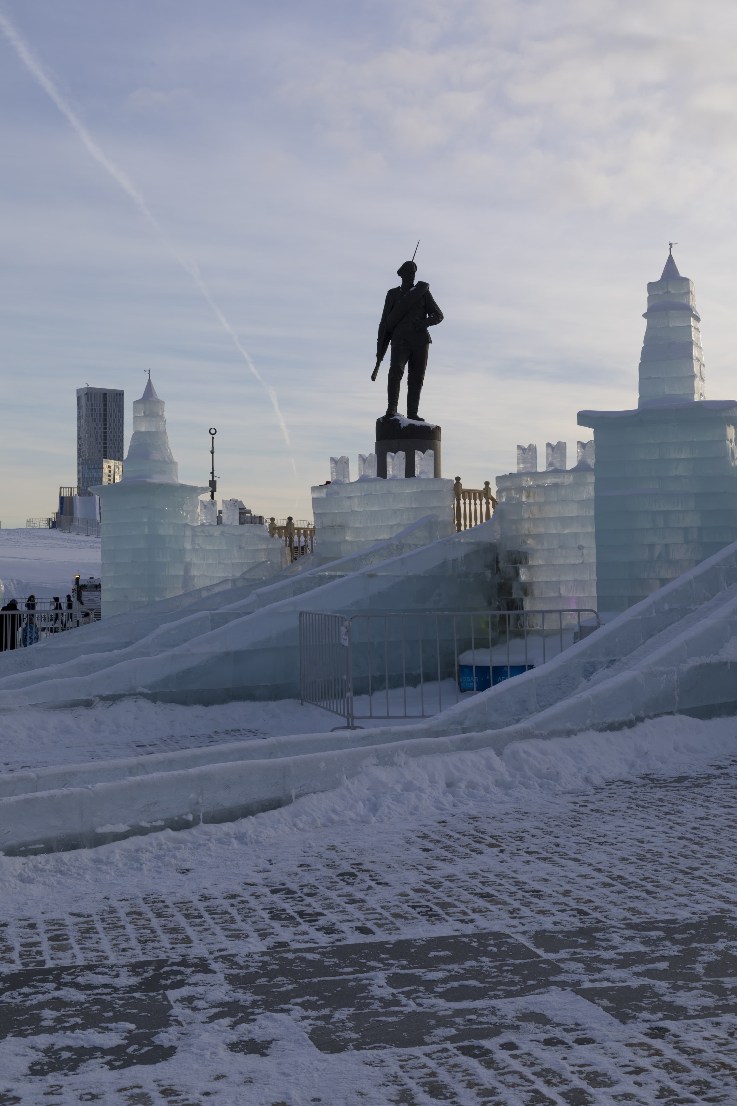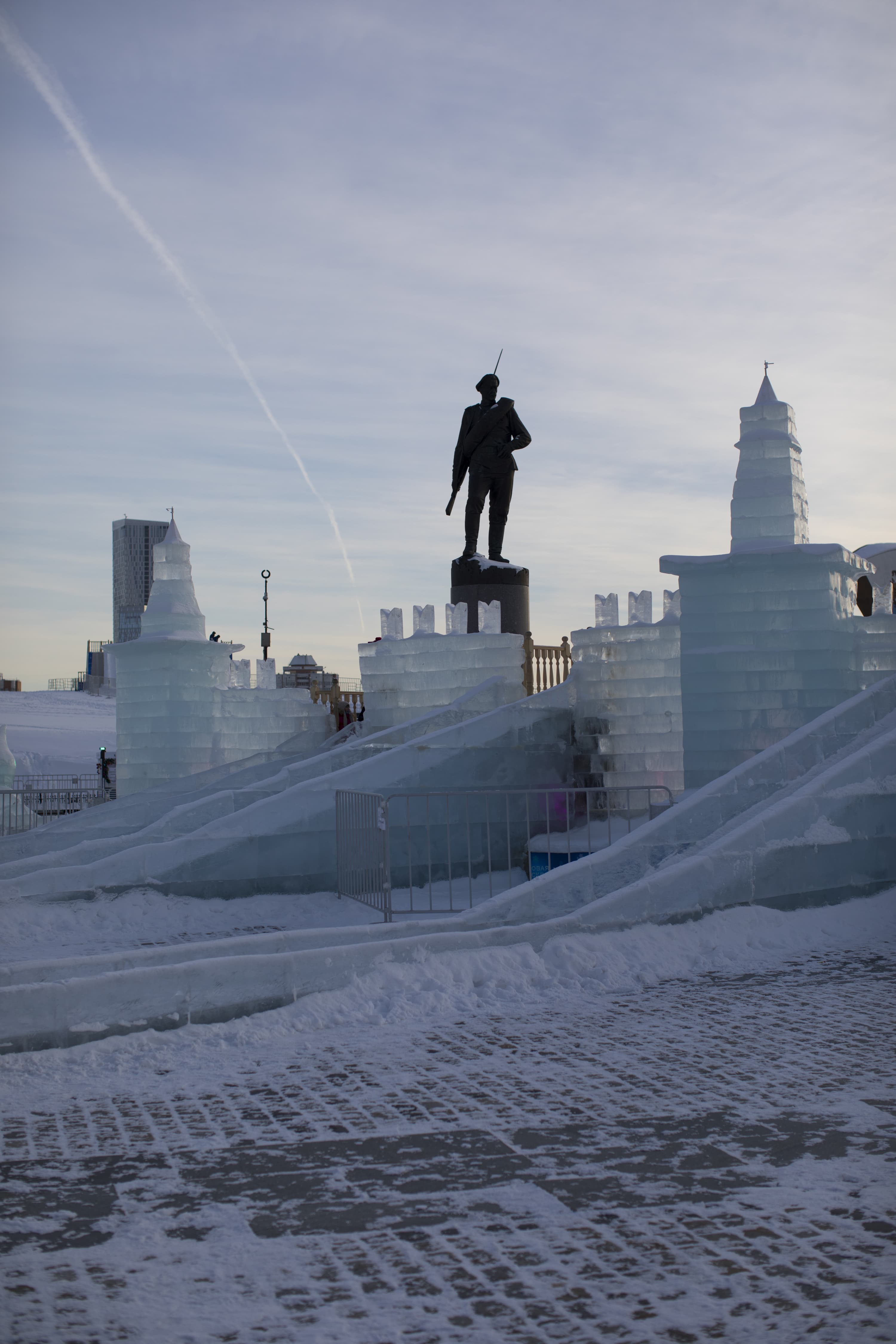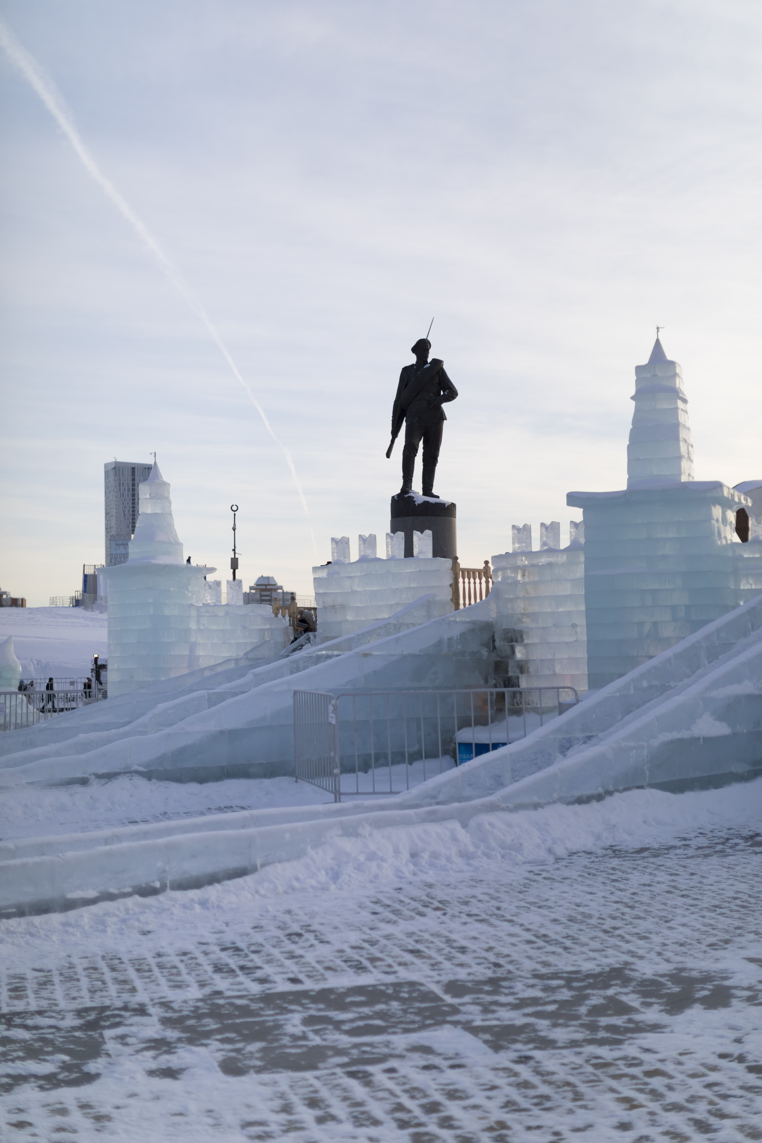 Перейдем к детальному сравнению результатов работы обоих объективов при разном раскрытии диафрагмы. Для каждого приведем по две картинки: верхняя без приложения специфического профиля объектива, нижняя — с профилем, корректирующим дисторсию, виньетирование и хроматические аберрации. Место съемки — выставка ледовых строений в Парке Победы на Поклонной горе в Москве.