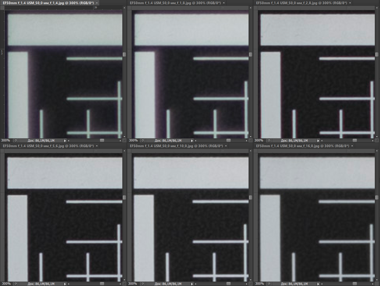 Теперь займемся изучением свойств наших подопечных на максимальном сравнимом раскрытии (f/1,4).