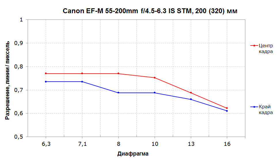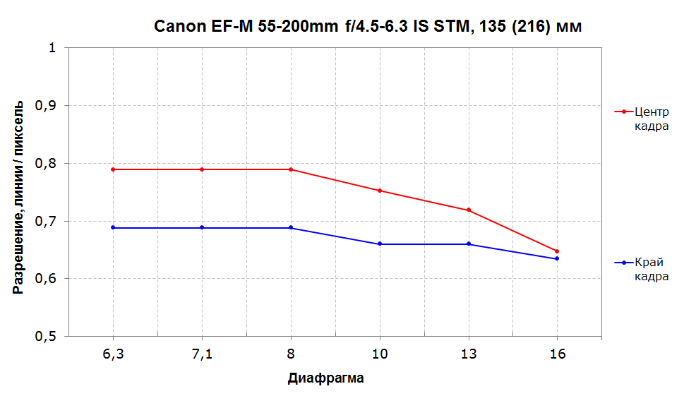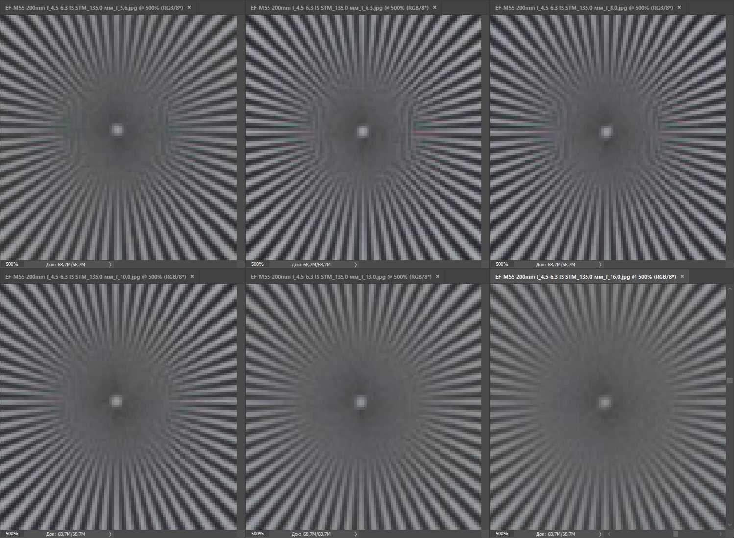 В лаборатории заострим внимание на объективных показателях нашего «стекла» на фокусных расстояниях 55, 135 и 200 мм.