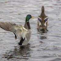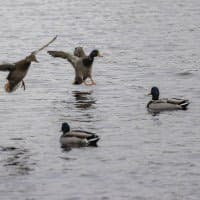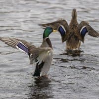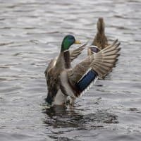 Теперь следует усложнить задачу, поставленную автоматике. На снимках ниже запечатлен процесс посадки на воду утки (ближе к нам) и селезня (дальше от нас). Сфокусируемся на селезне и посмотрим, не ошибается ли автофокус, переключившись на утку, которая летит ближе к камере и почти перекрывает селезня в поле зрения объектива. Фокусное расстояние 400 мм; F6,3; 1/1600 c; ISO 500. 9 кадров.