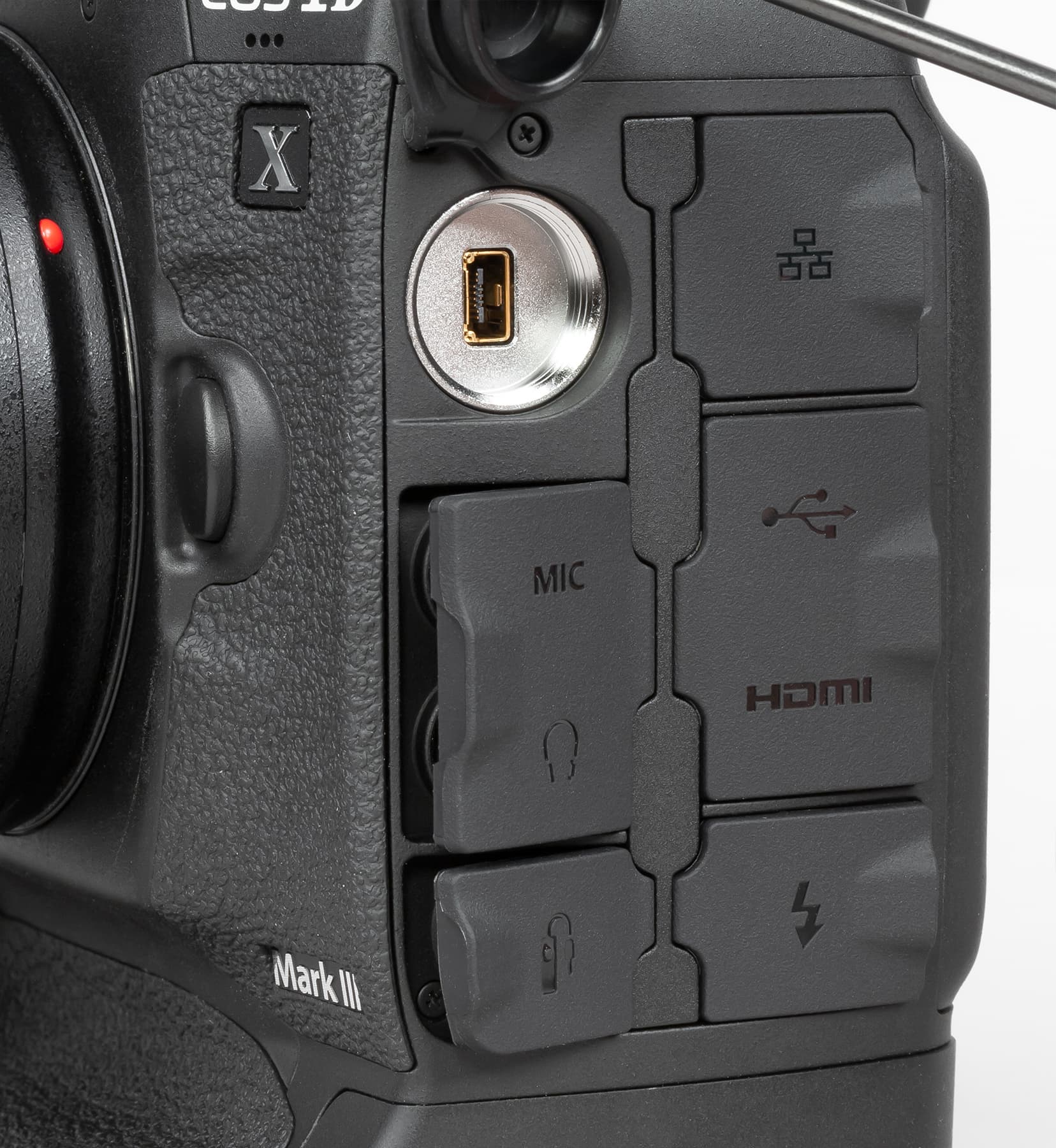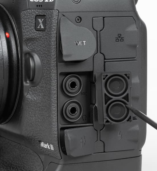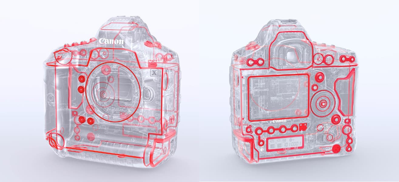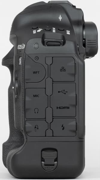 Canon EOS-1D X Mark III отличается отлично продуманной конструкцией и эргономически рациональными решениями. Обе ручки на корпусе (горизонтальная и вертикальная) хорошо ложатся в правую руку. Селекторы и колёса выбора параметров находятся в местах, до которых легко дотянуться пальцами этой руки.