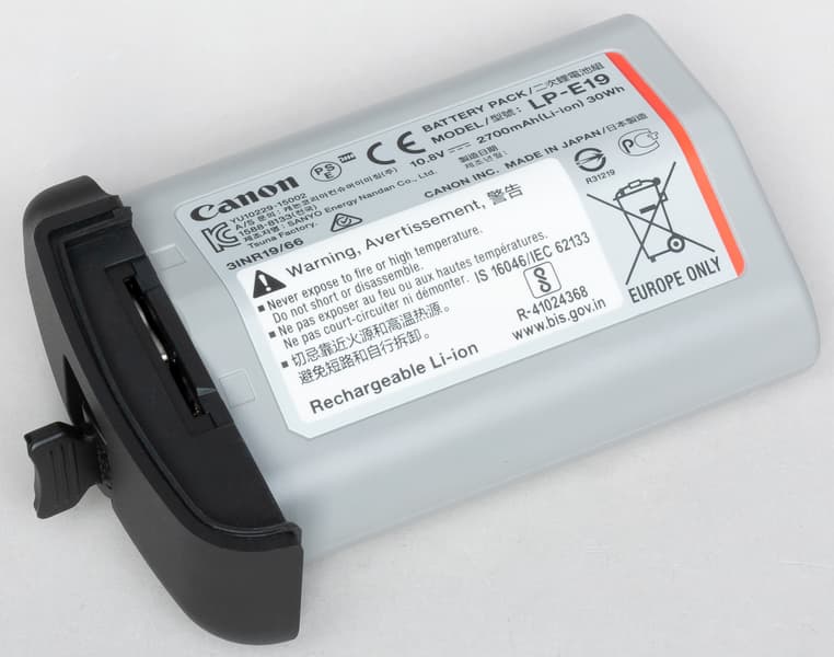 | Батарея | литий-ионный аккумулятор LP-E19; 2850 кадров при 20 °C или 2360 кадров при 0 °C |