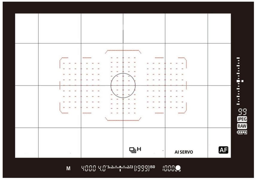 | Автоматическая фокусировка (АФ) | с видоискателем: фазовая детекция; 191 точка; 155 крестообразных точек в Live View: технология Dual Pixel CMOS AF с покрытием 90% площади кадра по горизонтали и 100% по вертикали |