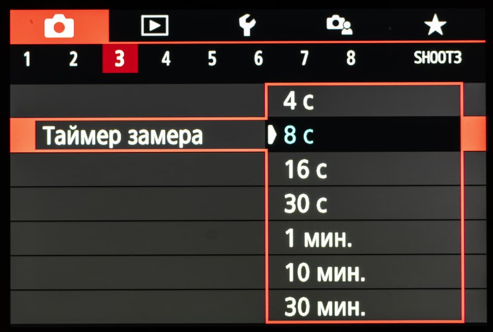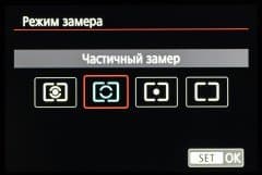 | Режимы экспозамера | оценочный (384 зоны), частичный (6,4% площади), центровзвешенный, точечный (2,8% площади) |