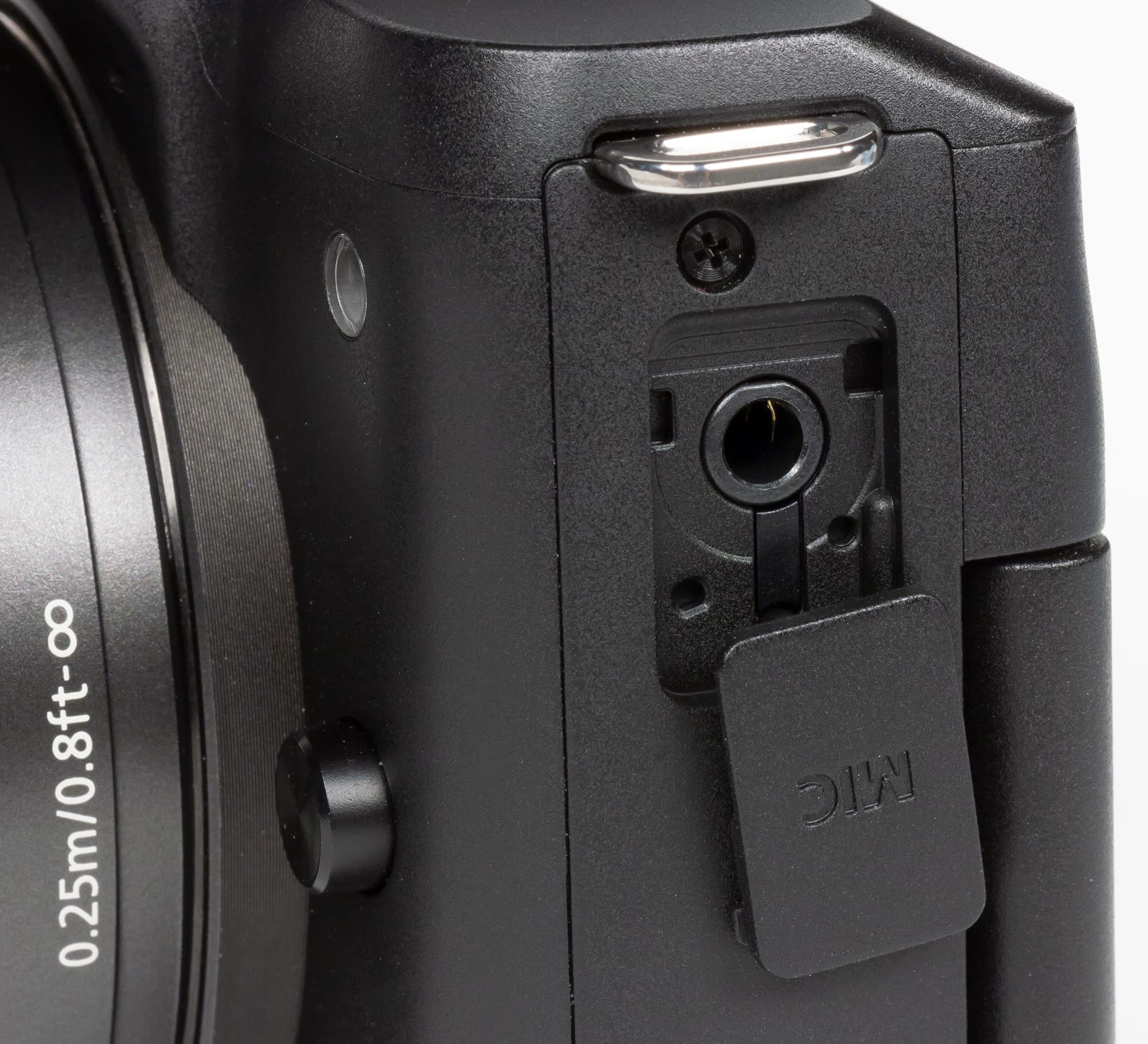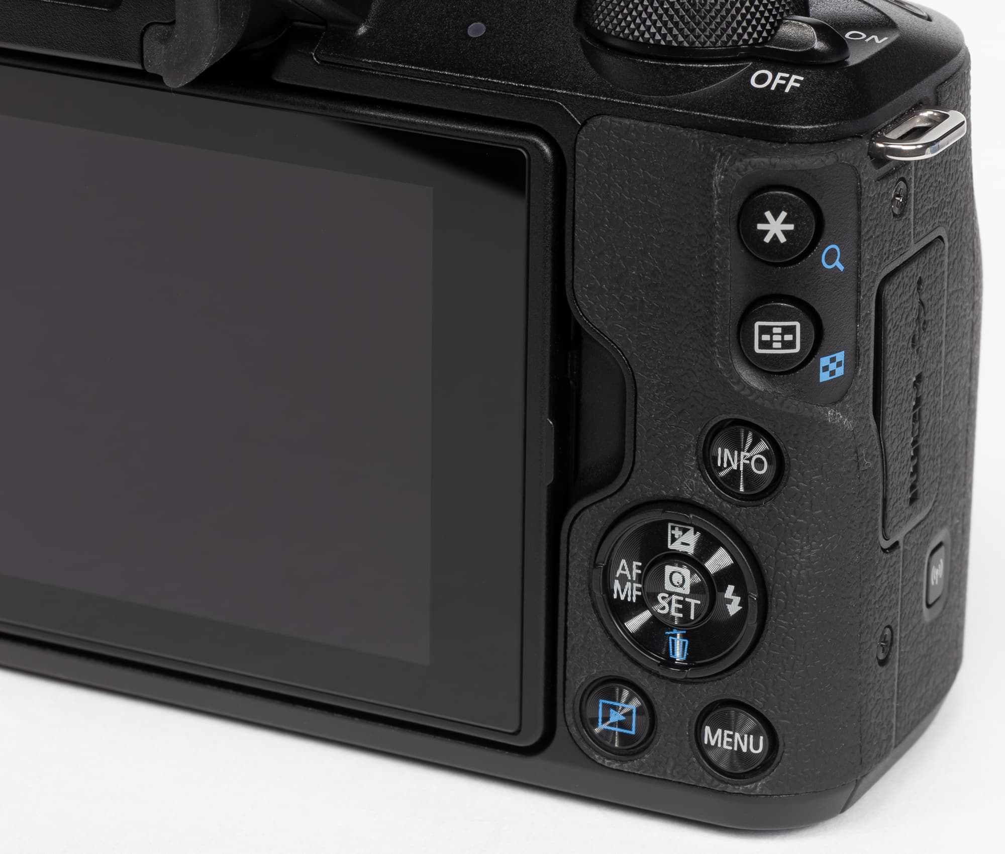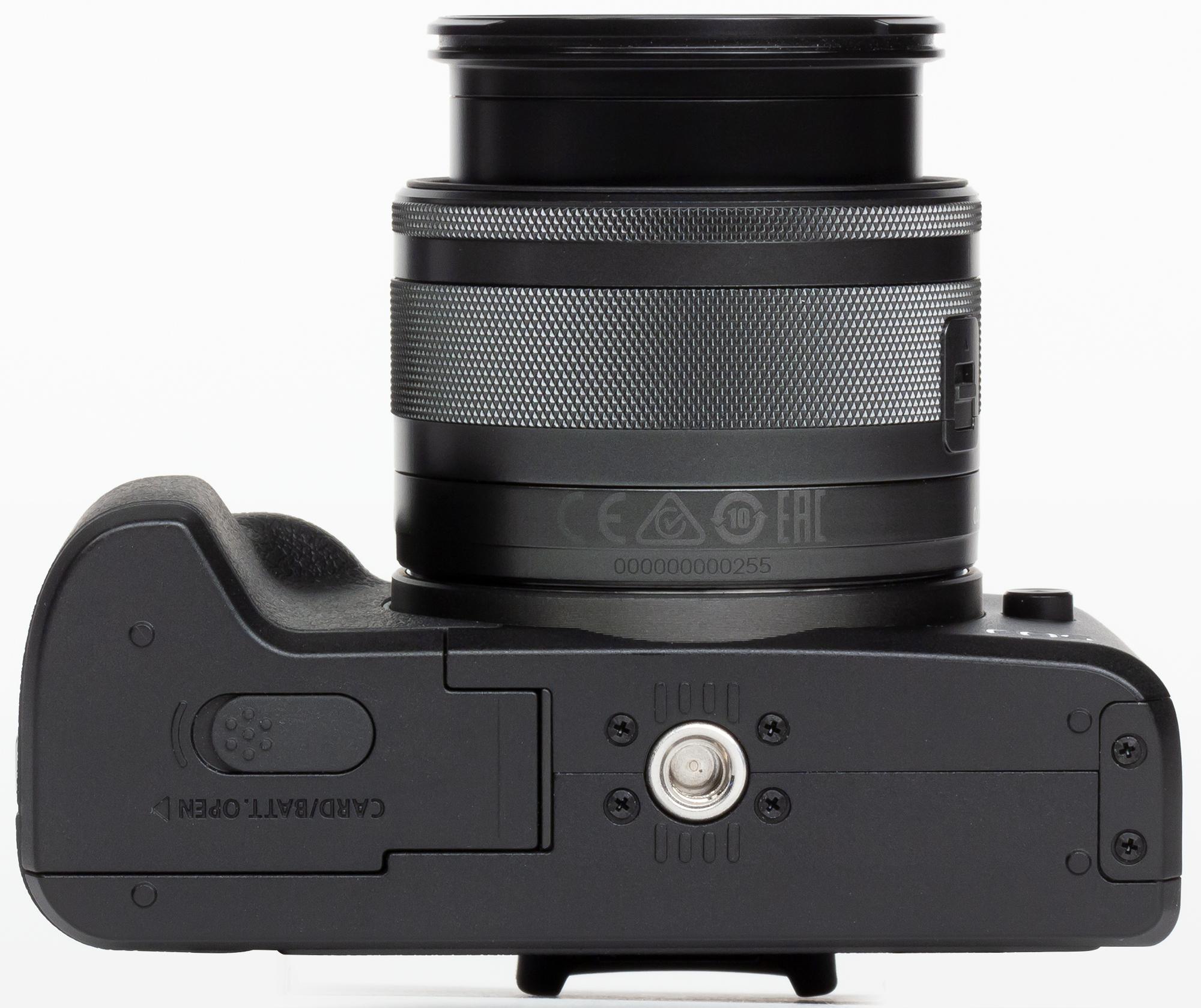 Компоновка новинки аналогична зеркальным камерам Canon EOS. Как фактор узнавания это, пожалуй, хорошо. Однако набор органов управления сильно редуцирован по сравнению с «зеркалками».