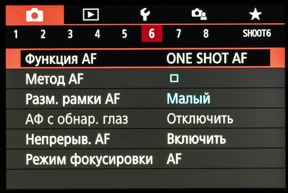 При фокусировке в режиме съемки фото камера использует технологию Dual Pixel CMOS AF, обеспечивая достаточно высокие скорость и точность наведения на резкость.