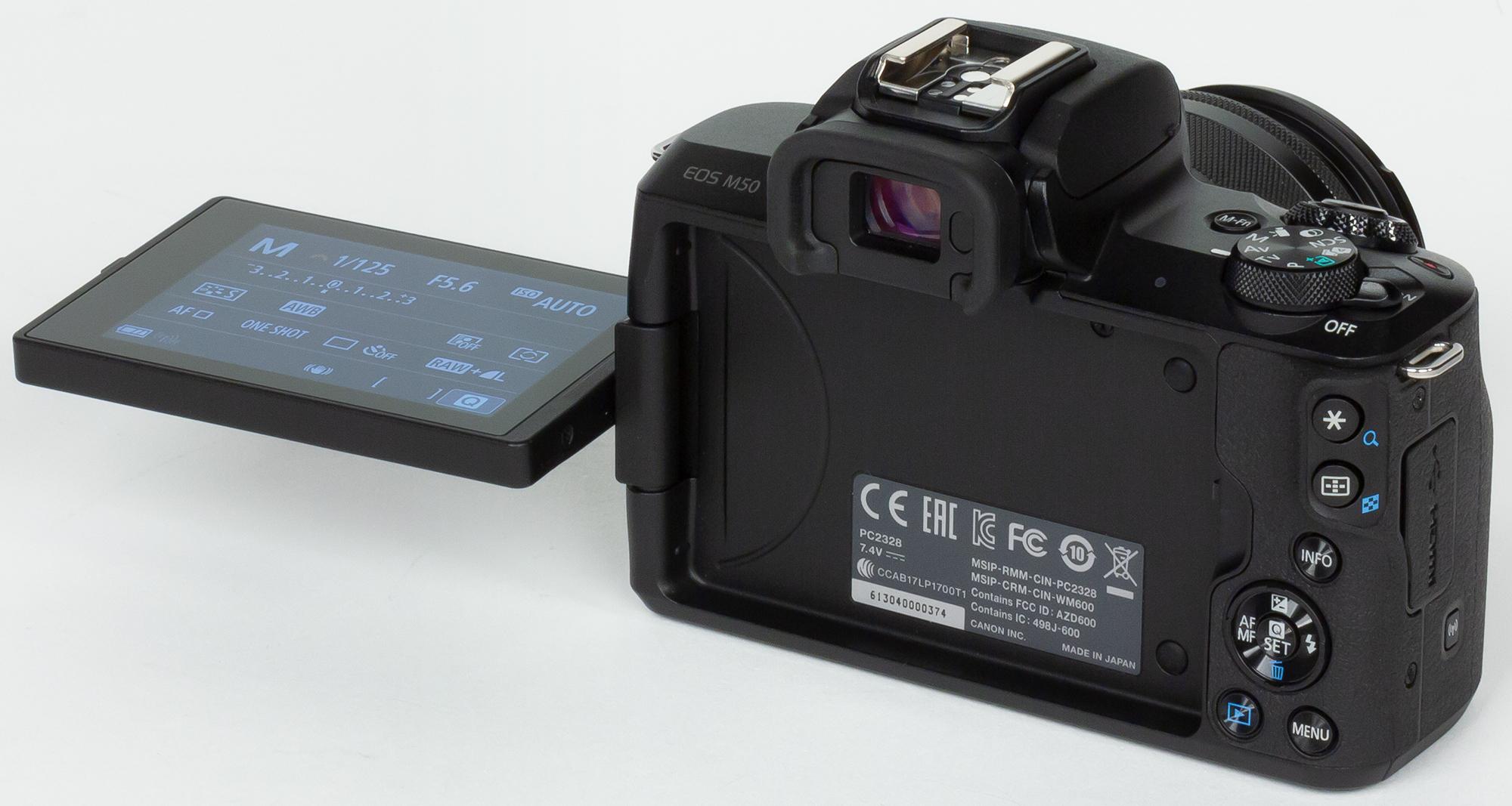 Экран можно устанавливать под любым нужным углом и даже развернуть к себе, чтобы сделать селфи. Максимальная подвижность дисплея — огромное преимущество Canon EOS M50 перед конкурентами.