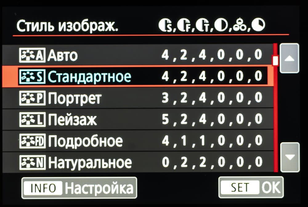 | Стили изображения | авто, стандартный, портрет, пейзаж, высокая детализация, нейтральное, точное, монохромное, три пользовательских |