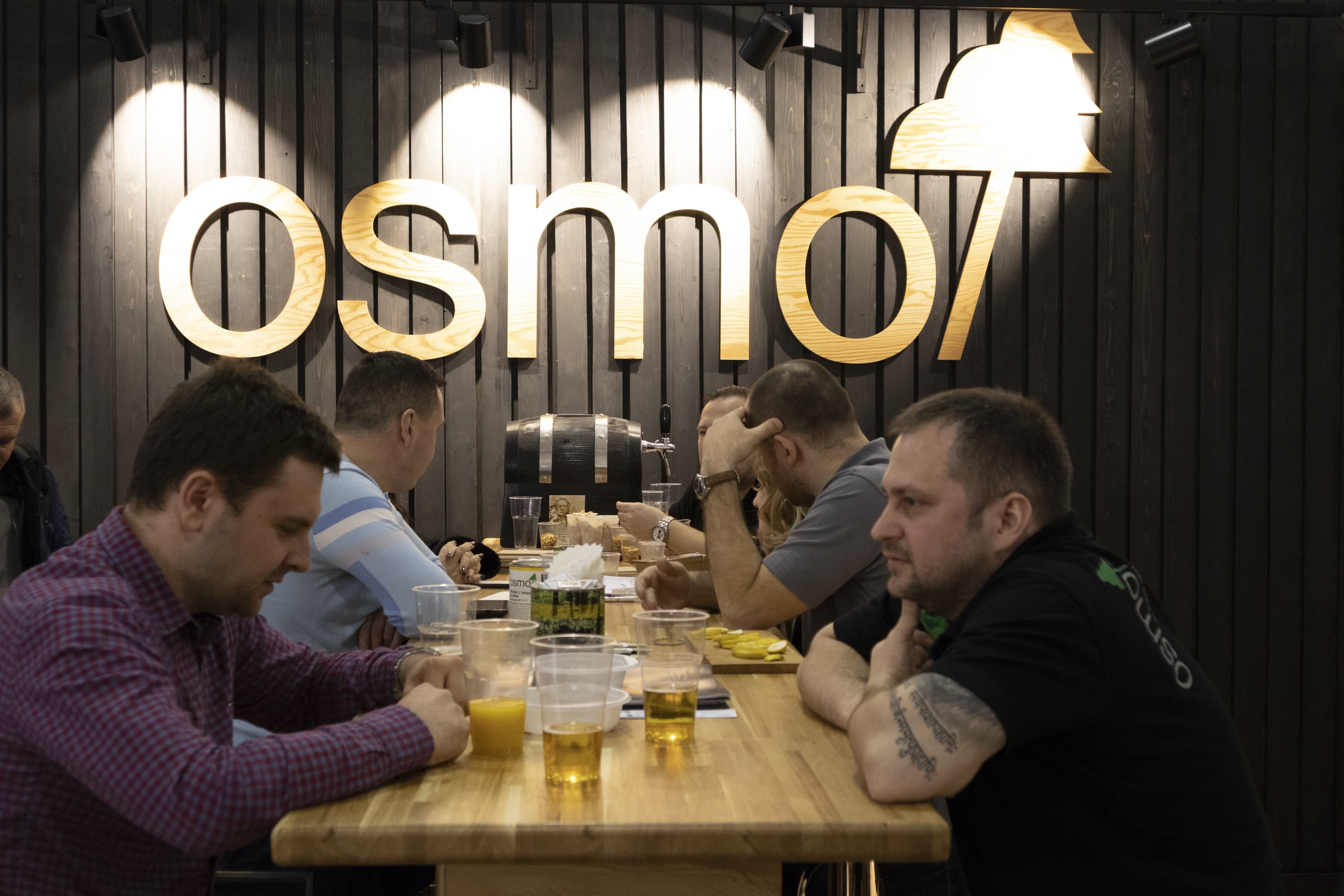 В первой серии с обилием деталей на всех планах мы активировали следящую автофокусировку и пользовались визированием по дисплею. При этом скорость серийной съемки снизилась вдвое, но появилась возможность более экономно использовать буфер снимков. Фокусное расстояние 24 мм; F5; 1/60 c; ISO 640. Фокусировка по даме в черном, с микрофоном в руках (справа).
