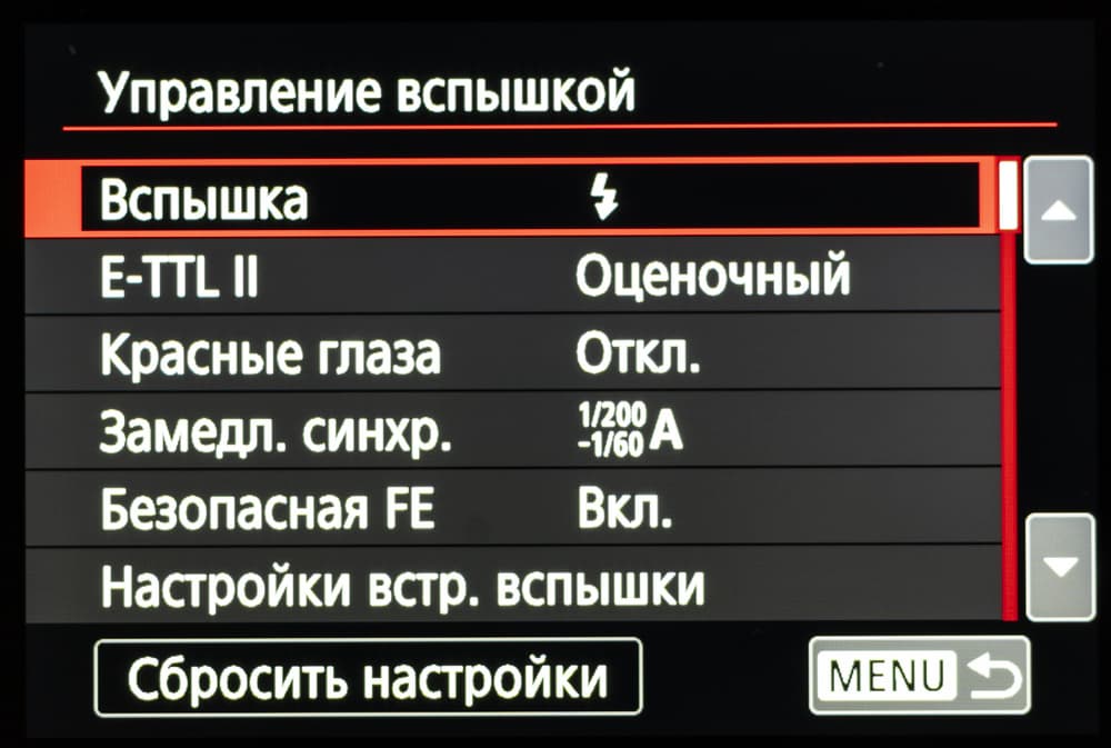| Встроенная вспышка | E-TTL II; ведущее число 5 (при ISO 100, м); максимальный угол охвата 15 мм; время перезарядки 3 с; выдержка X-синхронизации 1/200 с; компенсация экспозиции ±2 EV с шагом ⅓ EV |