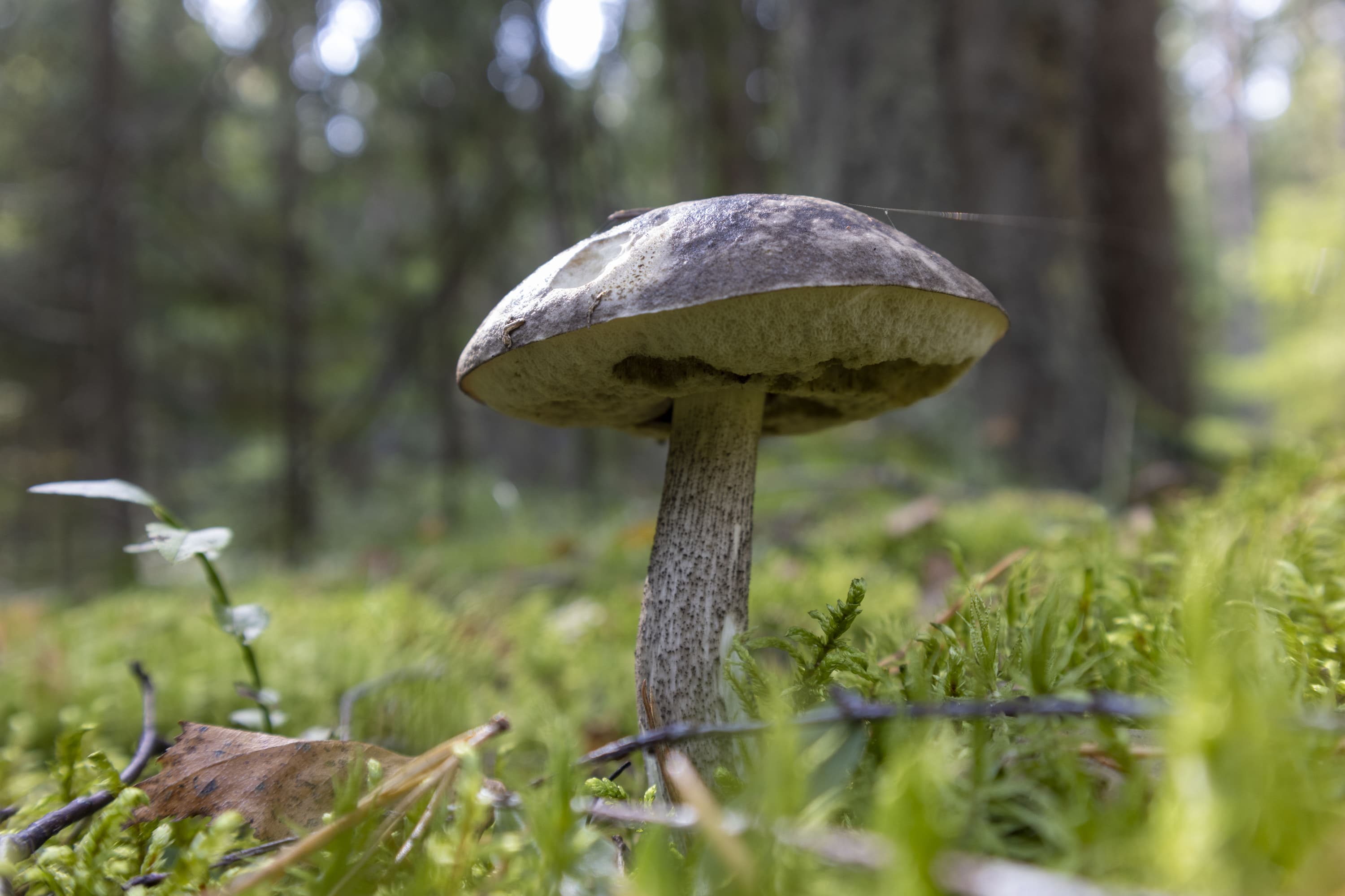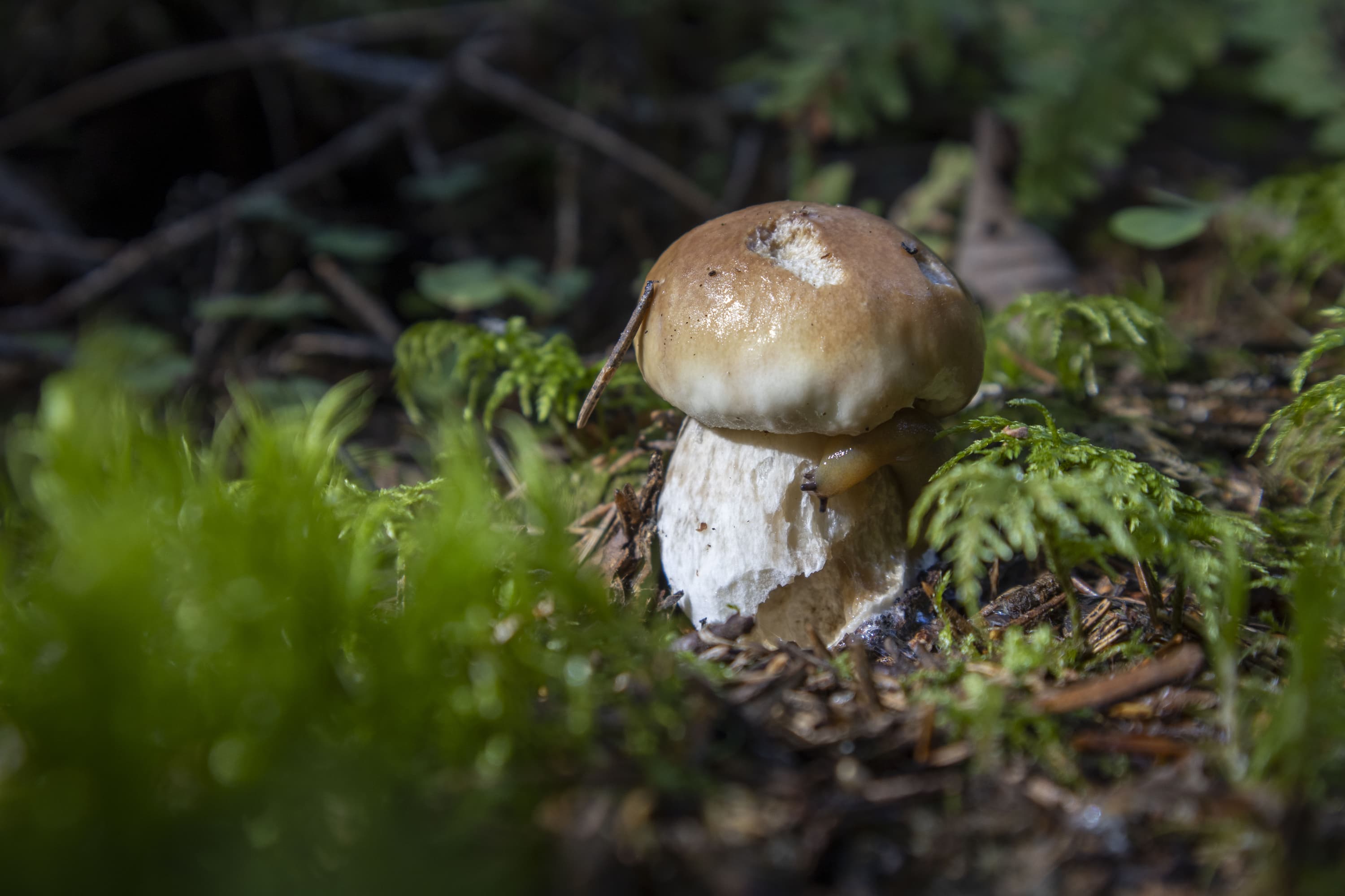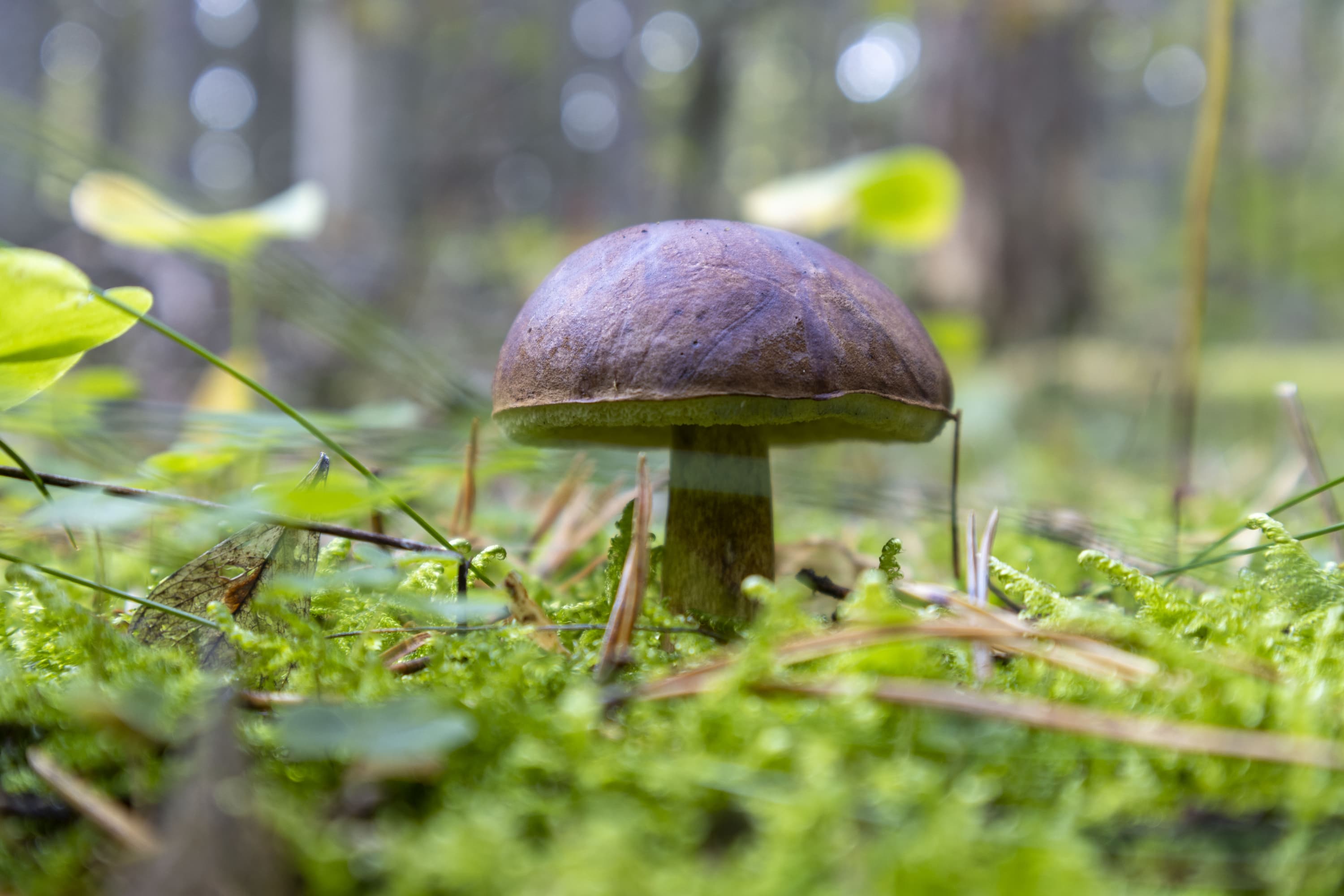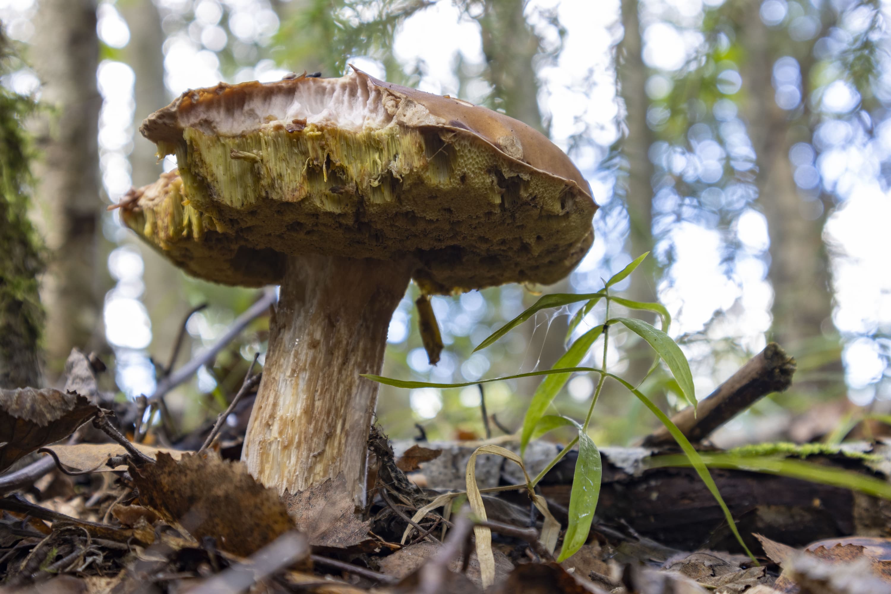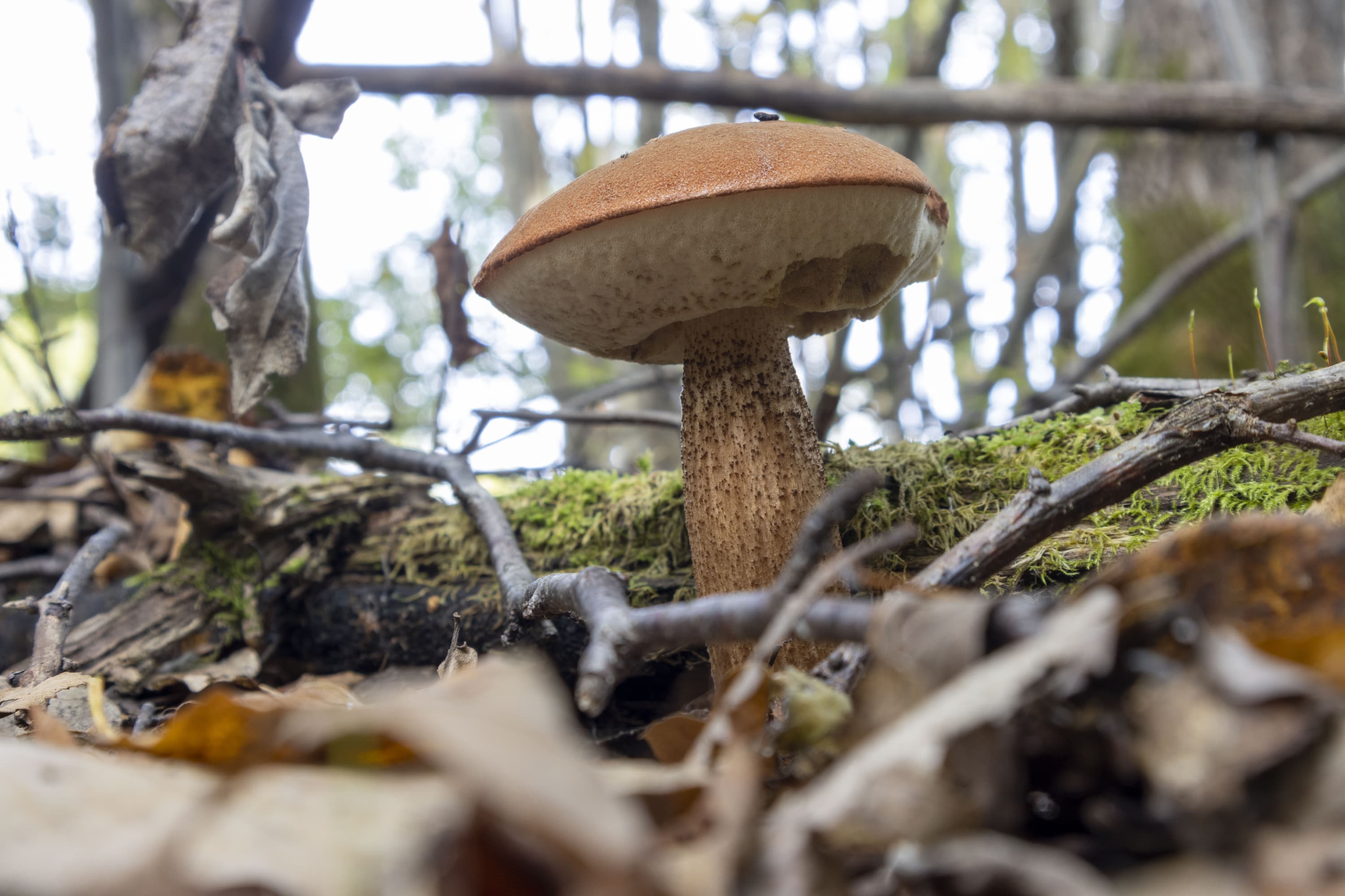 На снимке, приведенном выше, хорошо различимы не только пластинки шляпки гриба, не только ветки и травинки, но даже ворсинки на краях листьев клевера (справа).