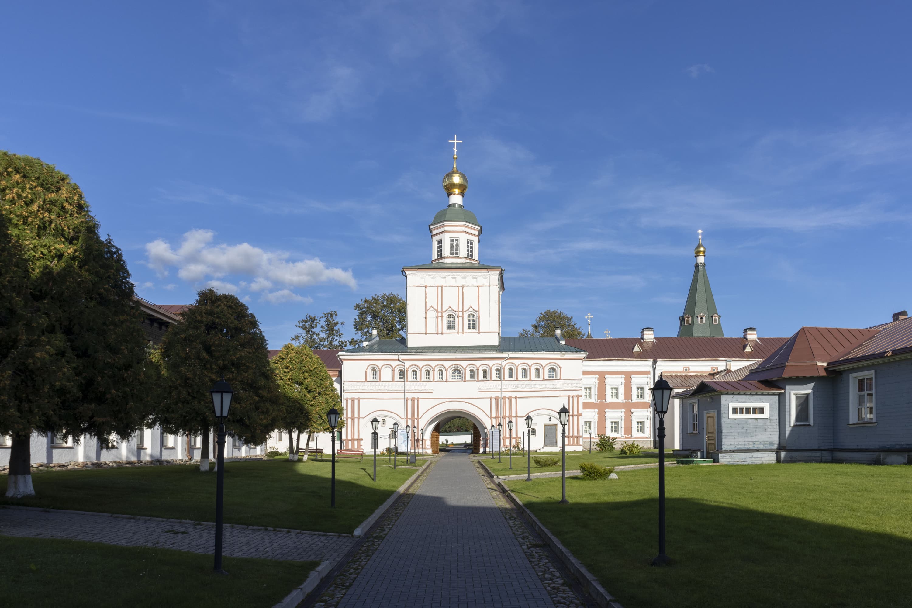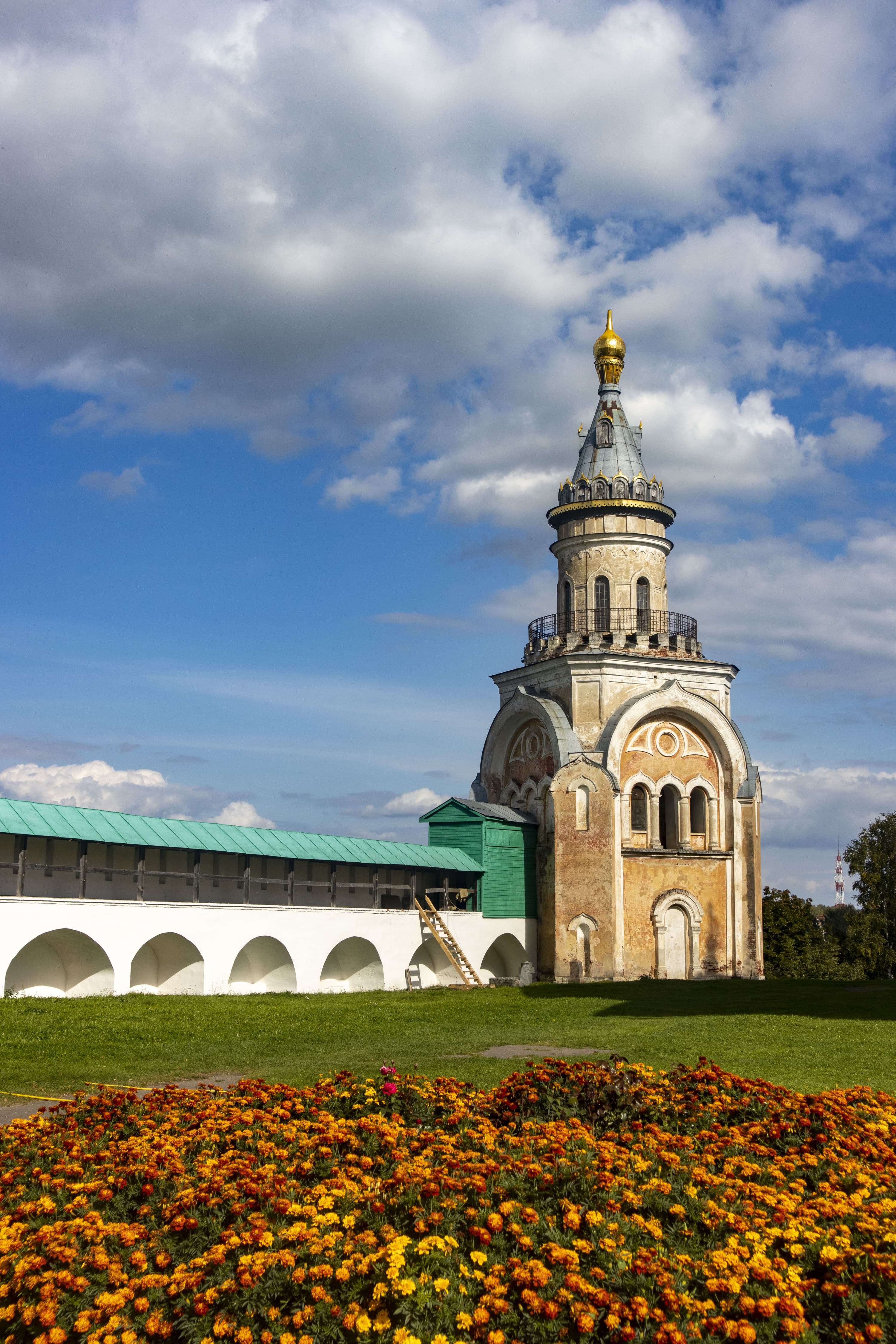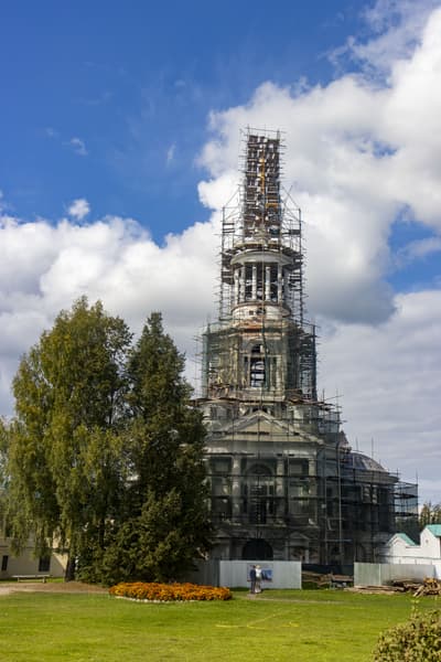 На средних и дальних планах воспроизведены все значащие детали: элементы строительных лесов на колокольне, детали заграждения, листва на деревьях. А при съемке крупных планов результат еще более интересный.